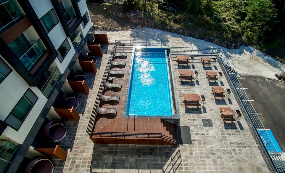 탁 트인 전망이 매력적인 루프탑풀과 카페등 차별화된 부대시설을 보유하고 있습니다