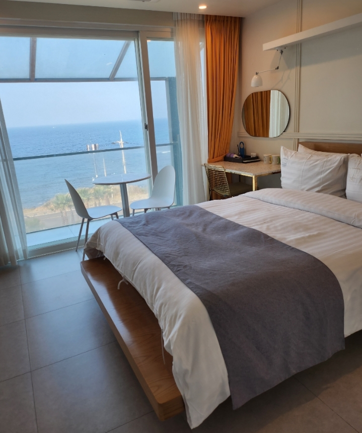 혼자 여행하려고 적당한 가격대의 호텔을 예약 했습니다. 솔직히 호텔느낌보단 좋은 모텔 같아요...; 연식이 좀 있어서 그런건지.. 물수압도 너무 낮아서.... 가랑비로 씻는 느낌 이였어요ㅠ 답답해 죽는줄 알앗어요... 장점으로는! 앞에 완전 바다뷰에 옆에 스벅있고 밑에 우니담이 있어서 아주 나이스 합니다!
