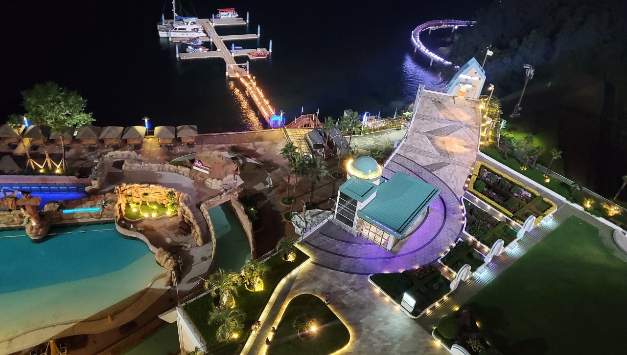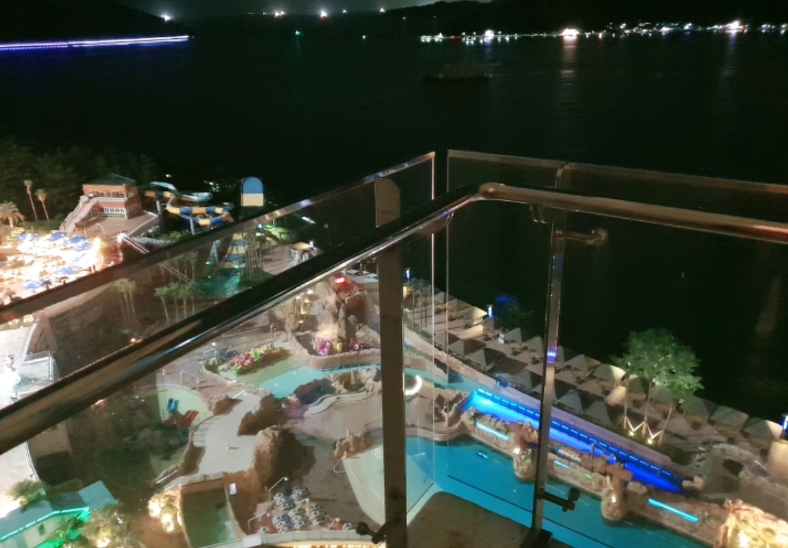 가족들과 여름휴가겸해서 물놀이 왔는데 초등학생까지 물놀이 하기에는 적당한 놀이기구와 유수풀, 파도풀이 있고 적당하게 스릴을 즐길만한 놀이기구도있습니다. 물놀이 후 저녁 식사 하기에 다양한 선택지가 없는게 단점이긴하지만, 지하1층 몬테로쏘는 적당한 가격에 식사를 맛있게 즐길실수 있습니다. 식사 후에 가볍게 주변 산책 하시기도 좋고, 지하 2층 오락실, 노래방 등에서 가족끼리 즐기기에도 좋습니다. 아침 조식은 가짓수는 많은데 가격에 비해서 맛이 그닥 맛있지는 않았습니다.