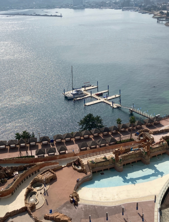 2.워터파크이용은 애들은 놀 수 있는 최적의환경입니다 다른 워터파크보다는 조금 작지만 물이 너무 깨끗하고 제주도 바닷가 보는 줄 알았음. 놀 수 있는 슬라이스도 재미있습니다 아침에 사람들 많이들 오시더라구요
