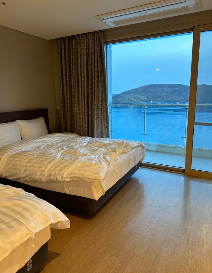 아이 둘과 함께한 4인 가족 이였는데 클린형 패밀리 객실했어요 취사룸은 청결도가 걱정되서요 방 크기도 여유있고 청소 상태나 침대도 편안하고 마음에 들었어요~~! 뷰도 정말 좋았어요!! 아이들도 신나했구요 다만 화장실은 샤워부스안 배수가 잘 안되는 듯 했어요 냉장고는 냉기가 약해요ㅠㅠ