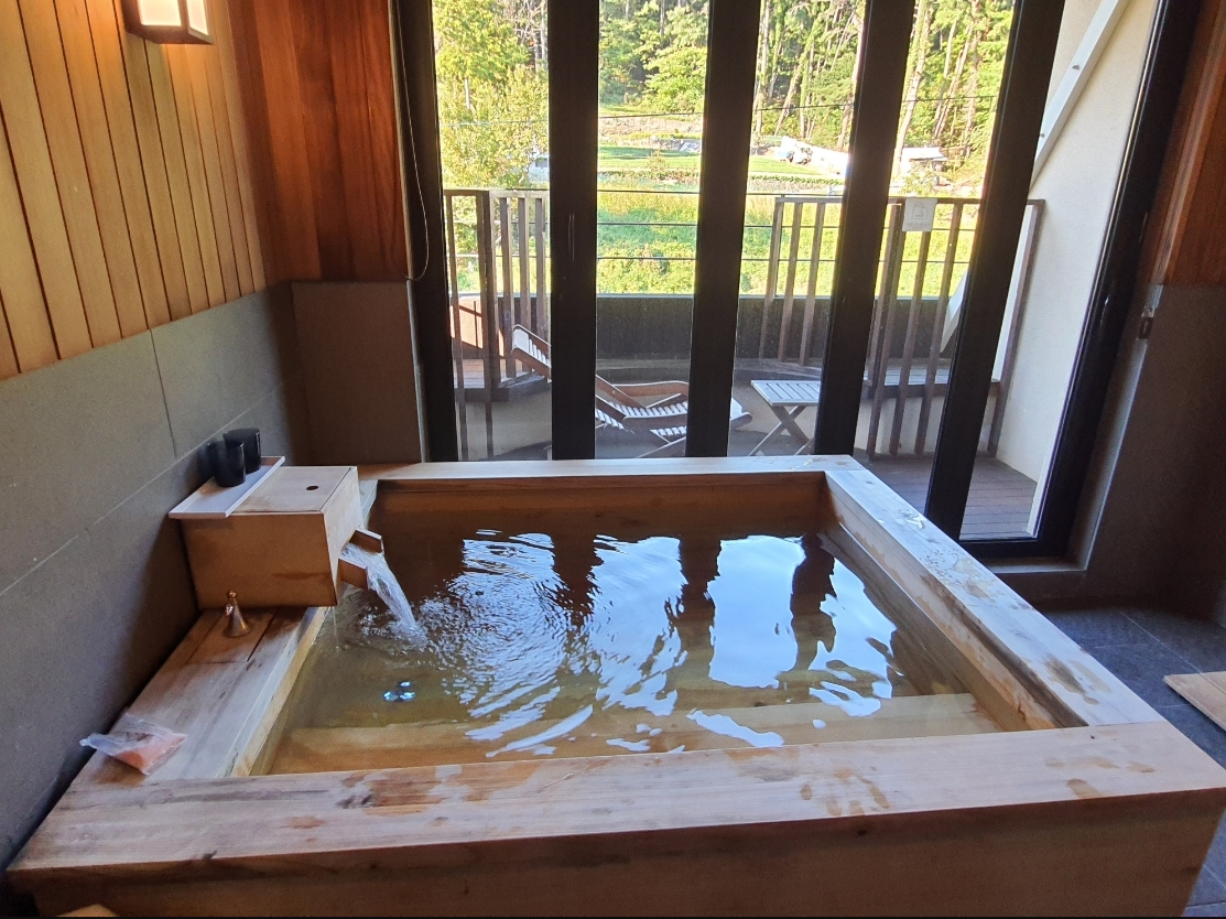 내부 디자인이나 인테리어는 이뻣는데 벽지나 바닥에 테이프자국, 뭐묻은 얼룩들이 많았어요. 이미 리뷰에서 보고 갔던 터라 감안하고 묵었네요. 식사도 리뷰를 본 터라 기대는 안했어요. 금액을 더 올리시고 식사 퀄리티를 더 높이는게 좋지않나싶어요. 이전에 일본 여행시 다녀왔던 료칸이 인상적이었는데 그만큼은 아니고 그 기분은 느낄 수 있는거같아요. 체크아웃시간이 좀 이른 편이라 이부분도 아쉬웠어요. 전체적으로 숙소 금액 대비는 아쉬웠으나 그래도 색다른 숙소 경험해보고 싶으신 분들 추천합니다.