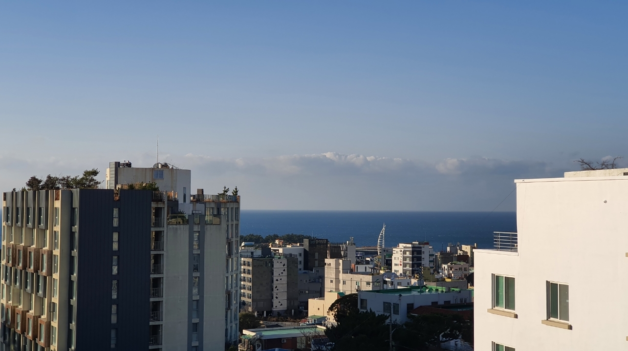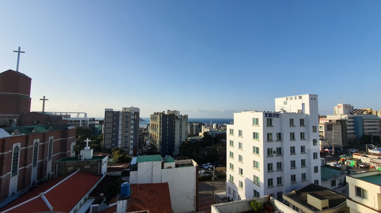 침대는 얼마나 아늑한지..너무 편안했습니다 앞으로도 서귀포 출장가면 여기만 이용할것 같습니다. 7층 테라스에서 찍은 아침 사진 참고하세요~ㅎㅎ 이러다 경쟁자들 많아지는건 아닌지 모르겠네요~