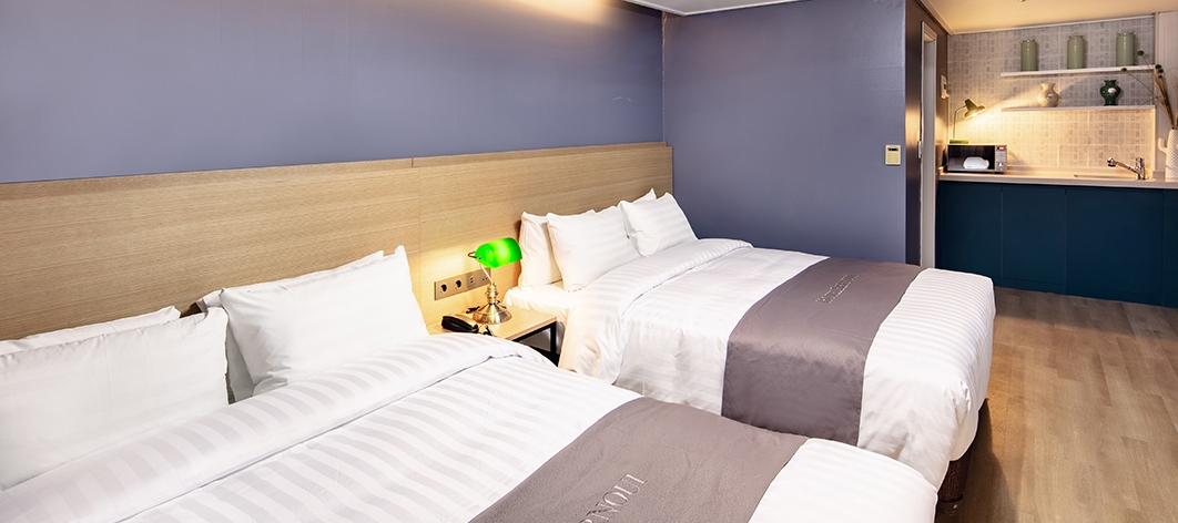 구로구에 위치 하고 있어서 저희가 원하던 관광지랑 멀긴했으나 번화가에 있어서 큰 불편함은 없었습니다 겉과 다르게 실내는 약간 노후된 느낌의 호텔이였습니다 가장 불편한 건 방안에 실내등이 넘 약하고 적어서 어두컴컴 눈이 불편할 정도였어요 ㅜㅜ 늦게 들어가서 주차가 쫌 애매했지만 그래도 주차해서 그것도 큰 불편함은 없었습니다