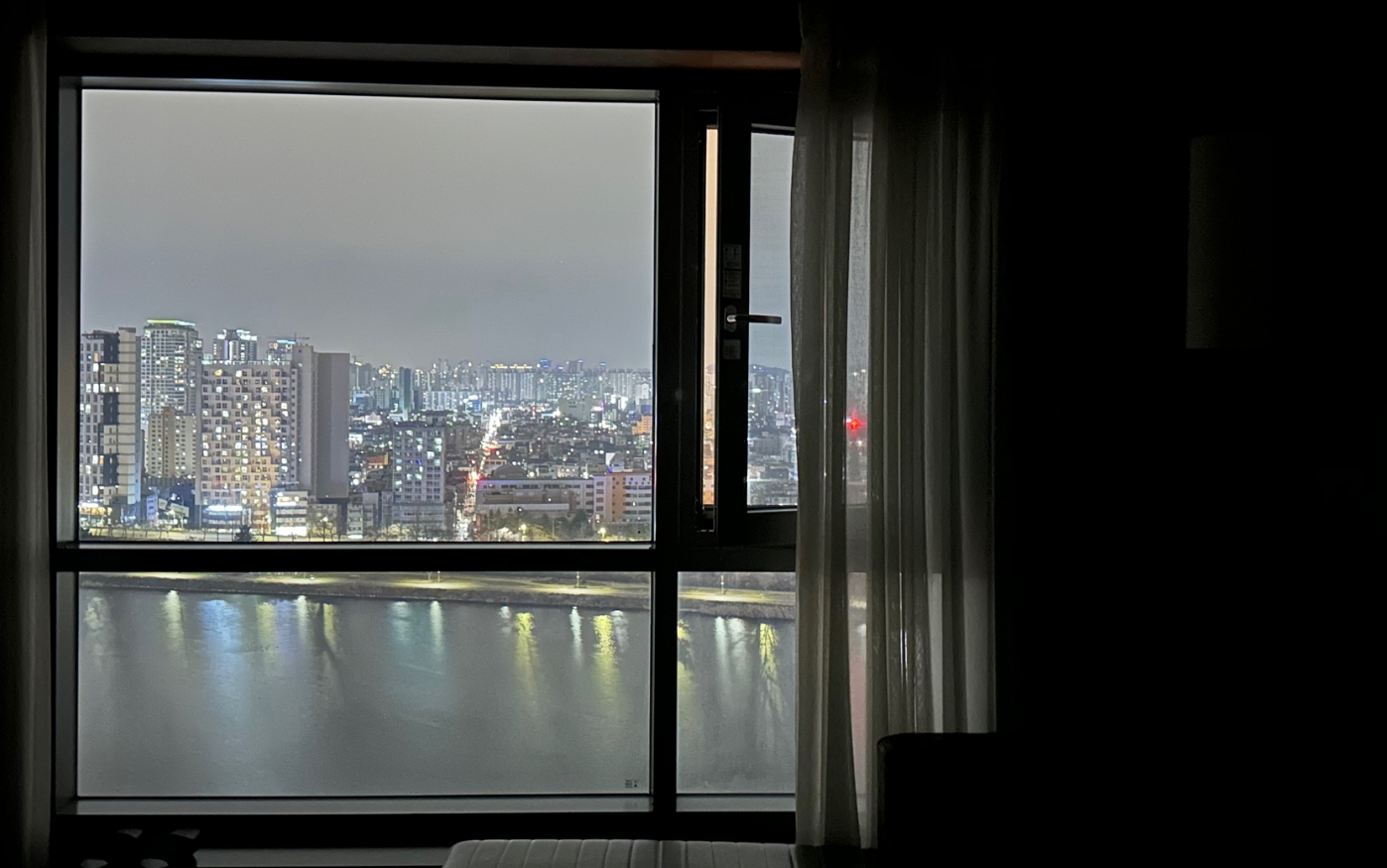 아쉬운 점 : 어차피 사용 안 하긴 했지만 주방 시설은 있는디 조리 도구는 일절 없다는 게 좀 웃겼음. 세탁기는 있지만 세제 역시 없음. 창밖 뷰가 태화강 뷰이긴 한데 시티뷰랑 반반 정도. 그래도 뷰는 좋았지만, 참고 할 부분은 바로 호텔 옆 공사장 소음! 답답한게 싫어서 창문을 살짝 열어두고 잤는데, 아침에 공사 소음 때문에 깼음. 많이 예민한 편은 아니라서 창문 닫고는 다시 잘 만 했음.