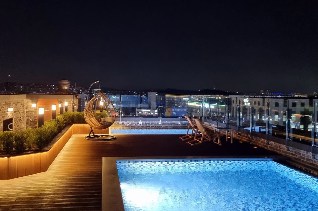 호텔 내부에 있는 책상은 낮고 의자는 높아서 너무 불편해서 밥 시켜먹었는데 바닥에서 먹음. 그리고 벽이 인스타 감성 카페마냥 콘크리트임. 호텔이 이렇게 되있는거 처음봄. 옷장은 잘 닫히지도 않아서 삐그덕거림. 그리고 침대 바로 옆에 불 조정하는게 있는데 그 자체가 불이 계속 켜져있어서 숙면 방해하고, 욕실쪽에 공을 많이 들인 것같긴 한데 문이 없어서 싸구려 모텔마냥 남 목욕하는거 다보이고 심지어 샤워실이랑 화장실은 문이 미닫이 하나라 둘 중 하나만 닫을 수 있음 ㅋㅋ그리고 수영장 깊이가 90cm임 즉 애기풀임 뷰는 그럭저럭 아파트뷰인데 풀에 들어가있으몀 하늘밖에 안보임 여러모로 별로고 다신 안갈거임