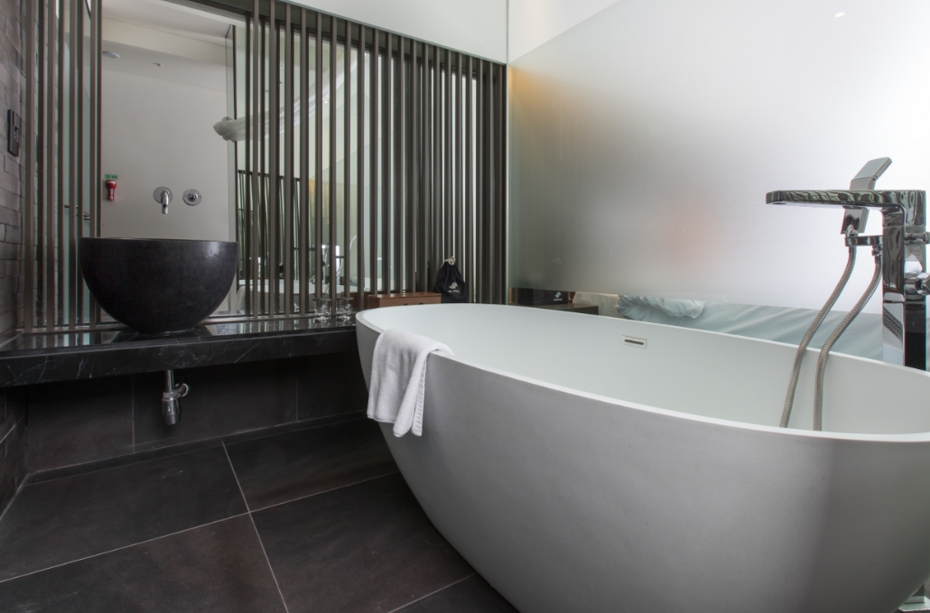 Free Standing 욕조와 항 알레르기 침구류로 안락한 숙면을 제공합니다