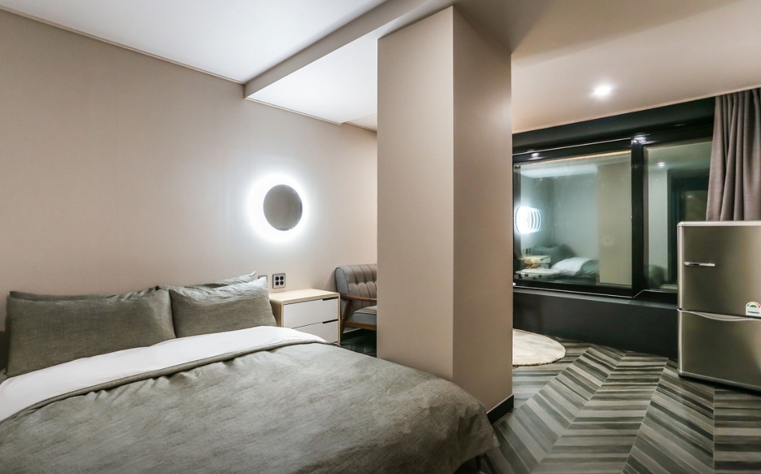담배 쩐내만 어떻게하면 좋은방이에요. 테라스도 괜찮고..! 무인 체크 인아웃이라 편했어요. 인테리어는 크고 깔끔했어요 화장실도 크고요 그리고 수건에서 물냄새(쉰내) 났습니다.. 신경써주세요..! 테라스는 그 전날 비와서 다 젖어있어서 아쉬웠네용.. 방음은 뭐 기대도안했는데 너무 적나라하게 ..^^