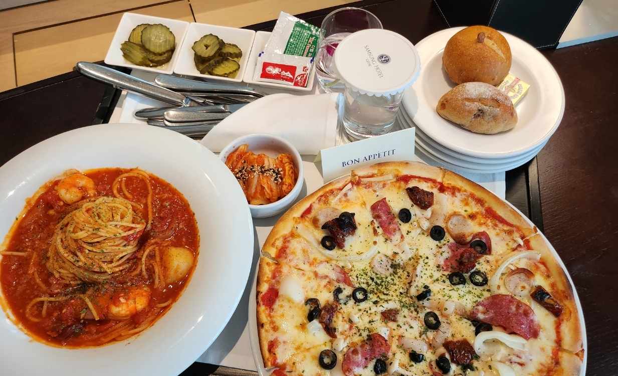 정말 너무 만족스러웠던 호텔이었습니다..! 5성급 호텔 맞구요, 로비에서 사진 찍으니까 다들 너무 예쁘다고 하더라구요. 저는 오히려 너~무 힙하고 세련된 곳은 부담스러운데 삼성호텔은 편안하고 고급스럽고 딱 그 자체였습니다. 침구류도 너무 푹신하고 편안했구요, 신관이 아니었음에도 본관 화장실이 또 은근 레트로 느낌 나면서 너무 맘에 들더라구요.