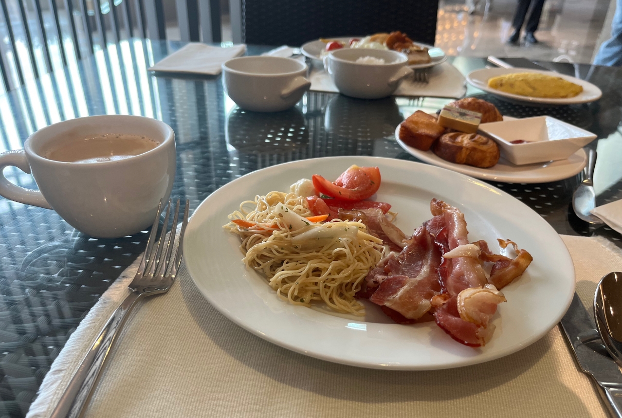 조식 06:30~09:30 9시까지는 가셔야 30분까지 식사 가능하세요 저희 아슬하게 갔는데 양해봐주셔서 간단히 후다닥 먹고 왔어요 30분 넘어서도 계속 식사하시는 분들도 계시긴 했어요 조식은 와플,오믈렛, 쌀국수, 커피 맛있었어요