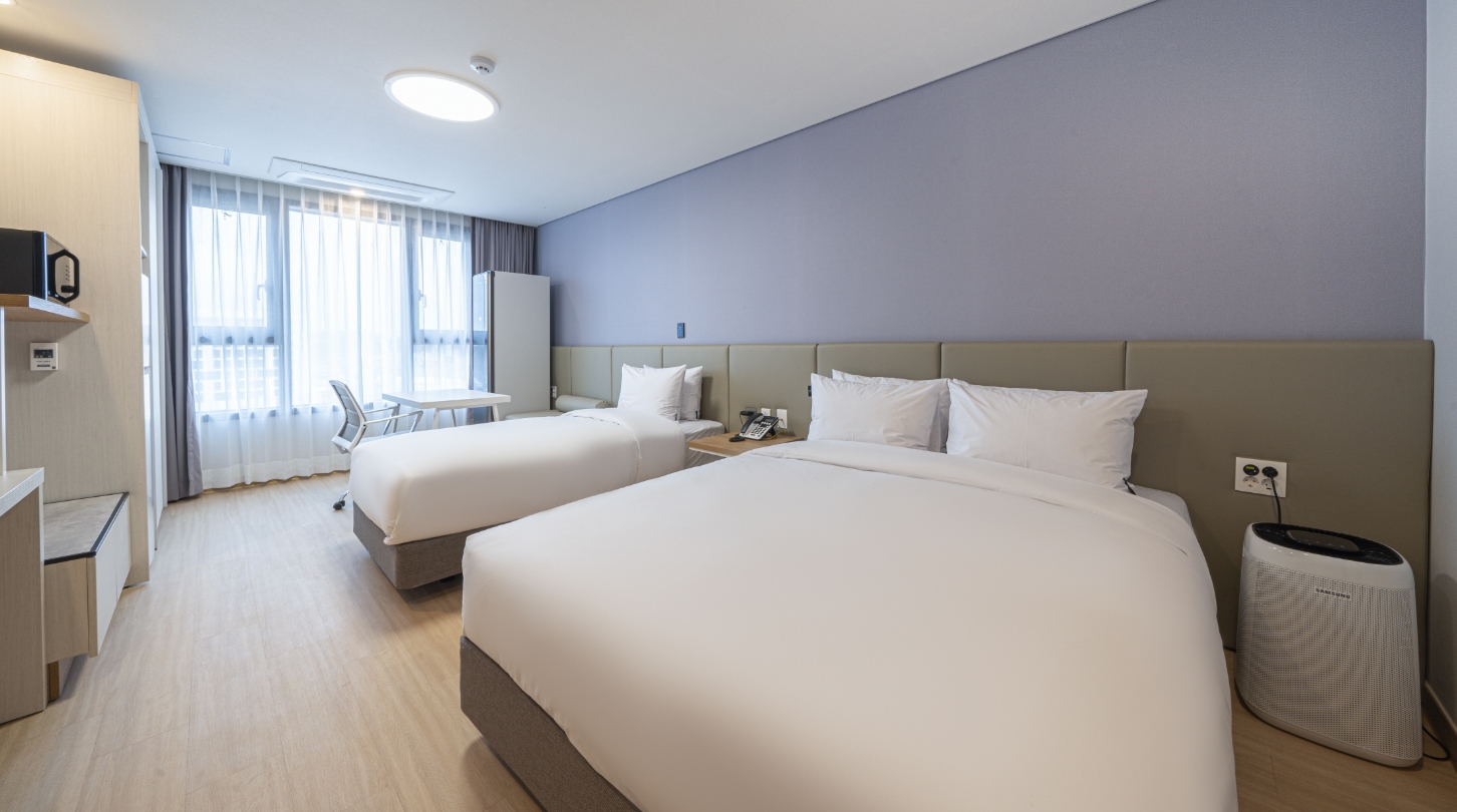 호텔 시설이 전부 새것같고 깔끔했어요. 특히 방은 남향이라 그런지 창문으로 해가 정말 잘 들어와서 쾌적했어습니다. 방에는 큰 냉장고도 있었고 전자레인지까지 있어서 간단한 음식 조리해먹기도 편해 보였습니다. 체크인 시간보다 조금 일찍 도착했었는데 로비에서 대기하고 있으니 방 정리를 마치고 바로 불려주셔서 오래 기다리지 않고 입실할 수 있었어요. 직원분들도 친절해서 좋았던 숙박이었습니다.