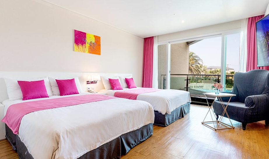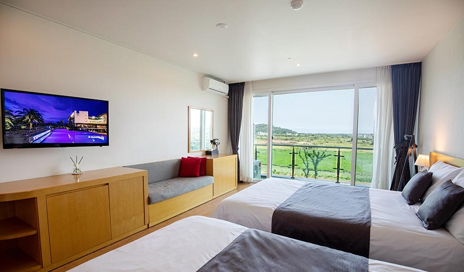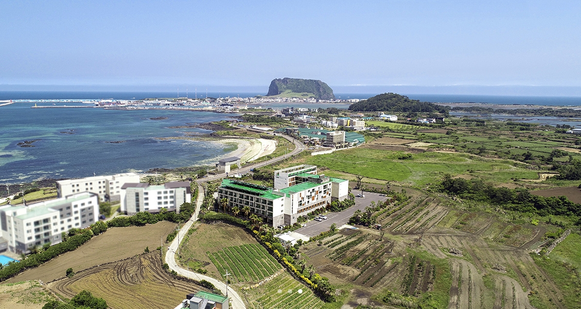 제주 성산에 위치해 제주 동부지역 관광지와의 접근성이 뛰어나며 성산일출봉과 우도, 정원전망의 객실을 갖춘 가족여행객을 위한 휴양리조트입니다