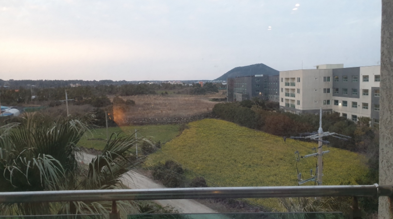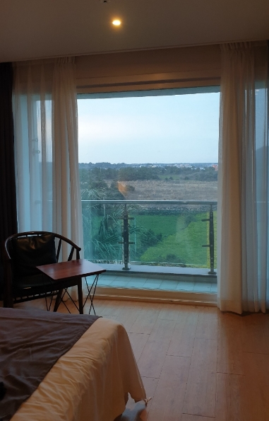 신혼여행 이후 남편과 25년만에 온 제주여행~ 애들이 뱅기표 사주고 숙소비도 대주어 오게되었는데 크게 기대하지않고 갔다가 감탄했어요~조용하면서도 편리한 곳에 위치. 성산일출봉이 떡~보이고 리조트 앞에는 해안 도로라 드라이브 후 숙소로 들어왔어요. 주차장 주변도 훤하고 봄에왔으면 유채꽃도 만발했을 것 같더라구요.