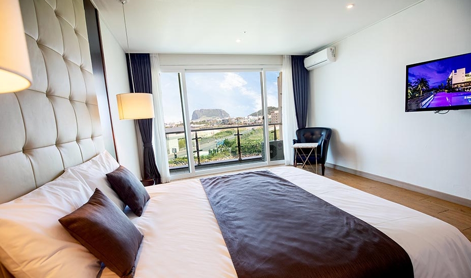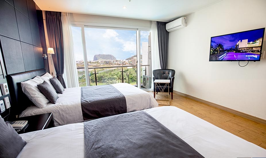 성산일출봉, 우도 등 관광지와 차로 10분거리에 있어서 이동하기 너무 좋았습니다. 성산뷰로 머물고 싶어서 디럭스킹 예약했는데 502호 테라스에서 본 전망은 성산일출봉과 우도 뷰입니다.만족만족 가성비가 좋습니다. 의자가 삐걱거리거나 옷걸이가 부셔져 있는 등 시설 관리는 다소 미흡하지만 가격과 전망이 좋이사 다시 올 거 같아요 만족