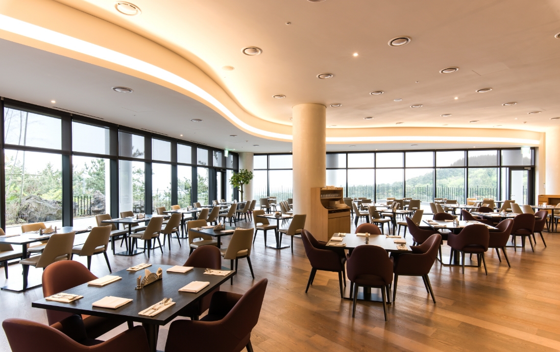 산 자락에 위치해 있어 조용하고 공기도 좋습니다 시설도 깨끗하고 침대도 편하고 난타 공연도 좋았습니다.