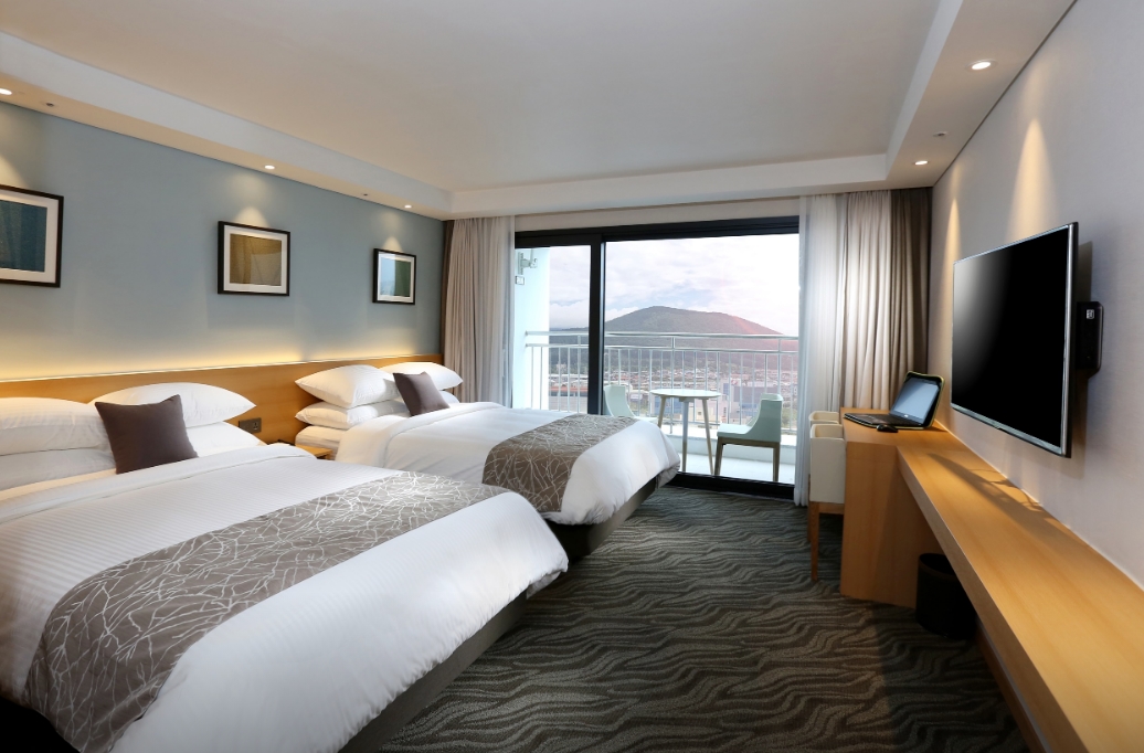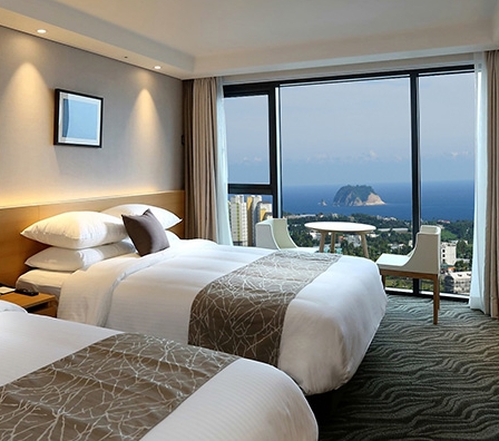 제주도 가족과 함께 여행이었는데 디럭스 패밀리트윈에 숙박을 했어요 호텔 근처에 다양한 맛집들도 많이 있구 컴포즈, 더벤티 저렴한 음료 및 커피 가게도 근처에 있어요 1층에 편의점 있어 이용하기 편리합니다ᆢ호텔 객실에서 바라본 바다뷰는 여기가 제주라는 느낌을 확 들게 합니다ᆢ