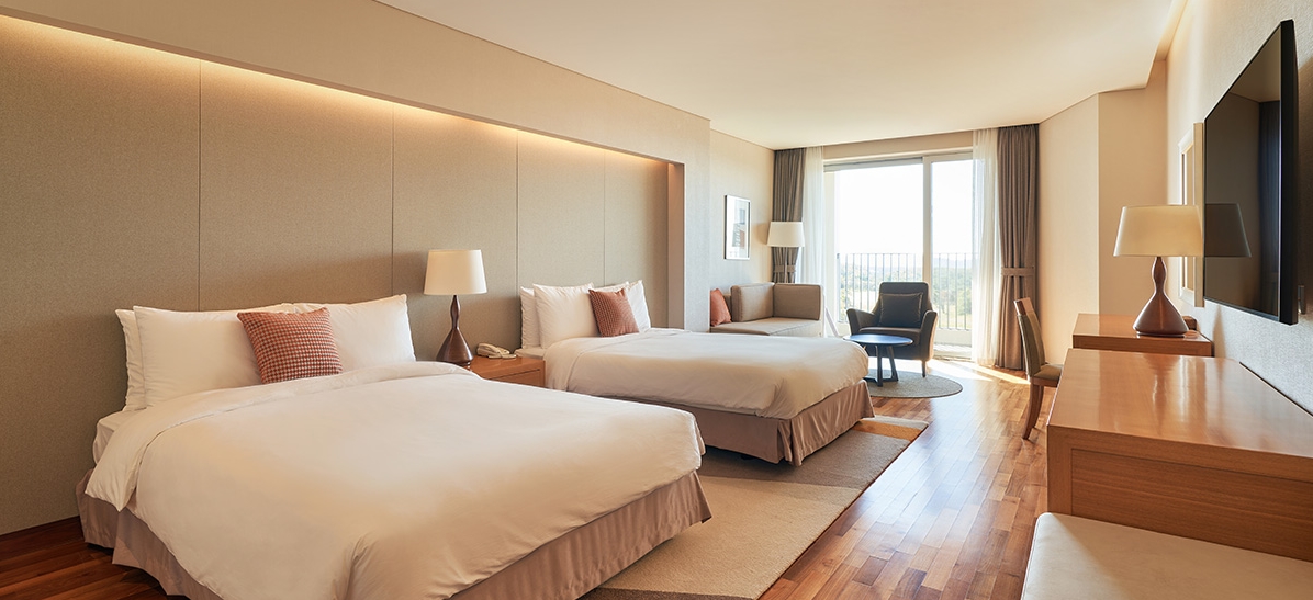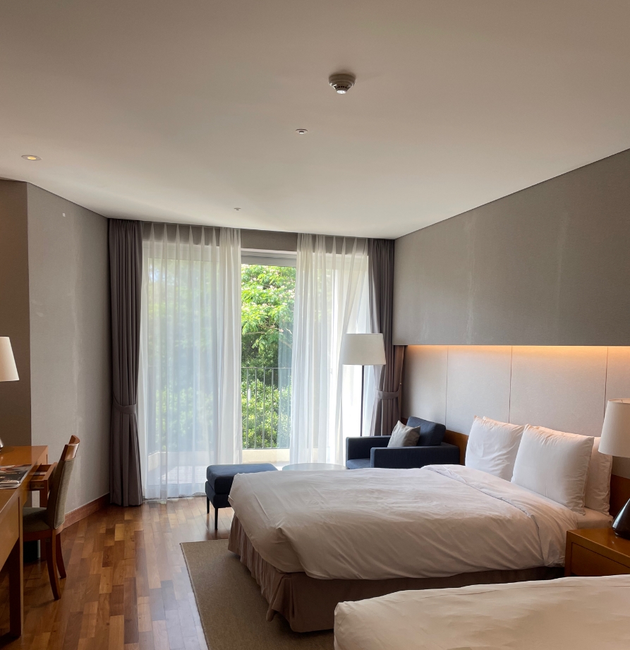 방은 팔러룸으로 예약을 하였고 (일반룸보다 좀 더 넓어서 머무는 동안 쾌적했습니다.) 예약 확인 전화를 하며 숲뷰로 부탁드렸습니다. 숲의 싱그러움과 아름다운 새소리에 매일이 힐링였습니다. 룸 시설에 있어서 최상은 아닌 곳입니다. 하지만 충분히 쾌적하고 편안하게 지낼 수 있는 곳입니다.