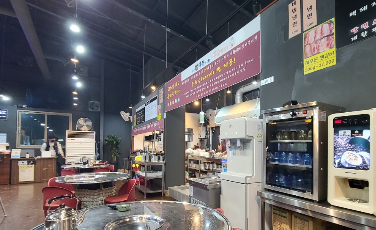 근처 괜찮은 고깃집 추천. 흑돈시백돈면 이라는 고깃집있는데 픽업서비스 해주셔서 저희는 숙소에 차 놓고 전화하니 숙소까지 픽업오셨어요. 집에갈 때도 데려다주시고요~ 너무 친절하심. 고기는 전 날 신화월드에서 먹었던 맛집보다 훨 맛있었어요. 고기 구워주시는데 육즙이 장난아님. 된장찌개도 맛있어요 강추! 1박 18만3천원(할인적용) 12세미만은 무료.