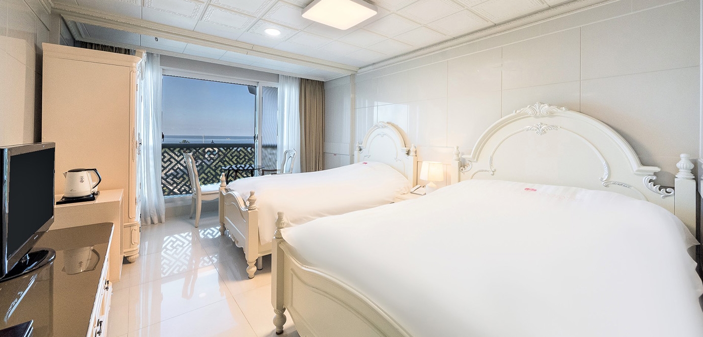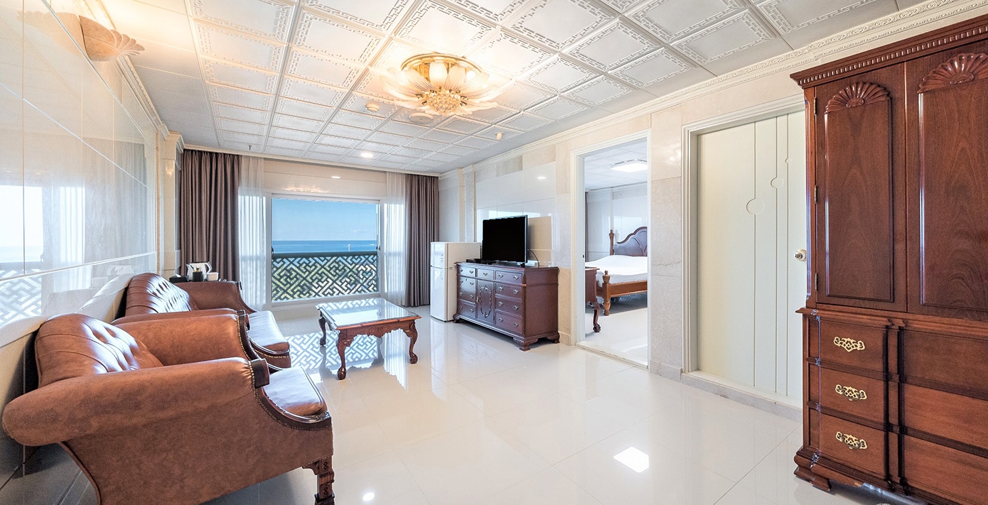 망상해수욕장으로 연결되는 다리가 있어 바로 앞이 바다임. 동해 시내 차로 10분거리, 먹거리 사서 방문 추천. 주차 문제 없었음 3인~4인 가족 적극 추천 단점은 딱히 없으나 호텔 내부에 식당 종류가 풍부한 편은 아님.