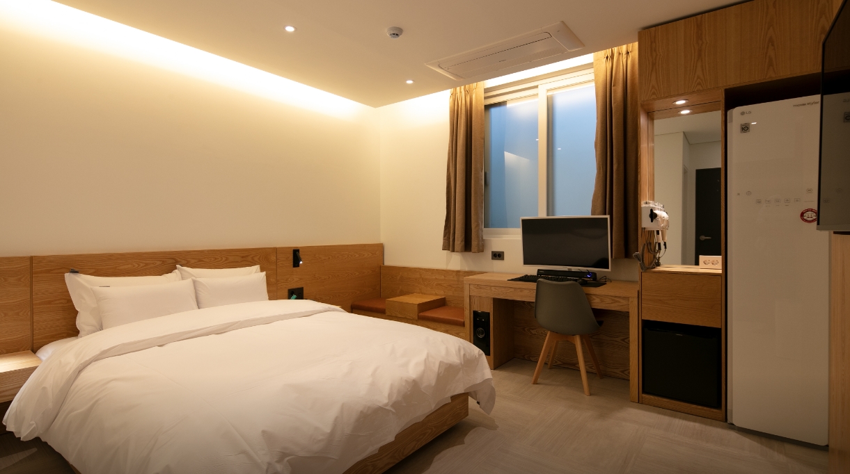 주차장 시설은 공간이 넓어 주차가 편했어요 인포에 계신분의 응대도 굉장히 친절하셨기에 주차부터 입실까지 모두 좋았었습니다 그리고 이 숙소의 가장 장점은 침대의 매트리스가 너무 너무 푹신한 점입니다 컴퓨터 좀 하고 자려했으나 살포시 누웠다가 눈 떠보니 퇴실 시간이었습니다 스타일러 및 개인위생용품 구비 등 너무 깔끔해서 잘 사용하고 갑니다 감사합니다