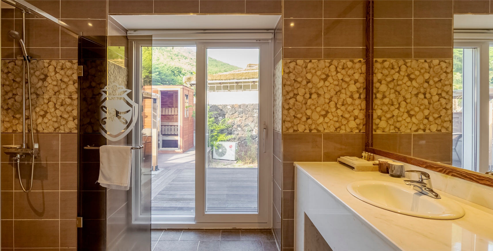 3. 내부 시설: 평수가 작으나, 테라스를 생각하면 매우 넓습니다. 깔끔하고 편하게 쉬기 좋았습니다. 다만 티비의 위치가 굉장히 높아서 앉아서 보면 목디스크 옵니다.. 올려다 봐야는데 그정도가 서서 보면 눈높이가 맞아요. 바다도 리조트 코앞인데 객실에선 보이질 않습니다. 그리고 외부 자쿠지는 물 온도가 낮은 편이고 물을 받는데 1.5~2시간이 걸려서 이용하기 쉽지가 않네요.