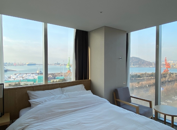 위치도 좋았고 주차장도 엄청 편하네요. 12층 가장 끝방으로 주셨고 머리 맡에 커튼을 치면 창문인줄 모르고 아침에 확인했네요~~ㅋㅋㅋ 근데 뷰가 너무 좋았습니다. 침구류 객실모두 다 깔끔