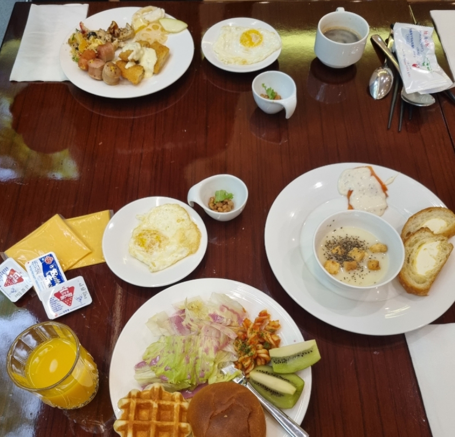 조식 가격대비 만족스러웠습니다. 단 붐비는 시간에는 좌석이 없을 수 있으니 주의 이 부분을 관리하는 직원이 따로 없는게 아쉬웠습니다. 호텔이 작은편이라 적은 인원으로 운영해서 그런듯 합니다. 기회되면 또 방문하고싶네요. 짧아서 아쉬웠습니다.