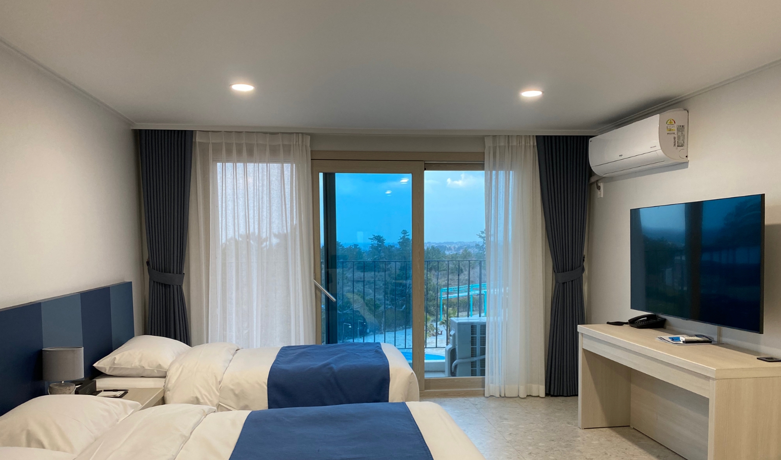 일정 때문에 협재 근처 숙소를 찾다가 발견한 곳! 나름 규모도 큰 것 같고 후기도 좋아서 선택했는데 만족합니다! 침구 깨끗, 청소 상태 괜찮았어요. 룸컨디션 좋았고 큰 테이블, 화장대 등 공간이 넓어서 편하게 지내다 왔어요. 테라스도 있어서 바깥 풍경 구경하는데 힐링 했어요. 위치에 따라 보이는 정도가 조금 다르지만 바다가 보이고 탁 트여 있어서 굿굿!