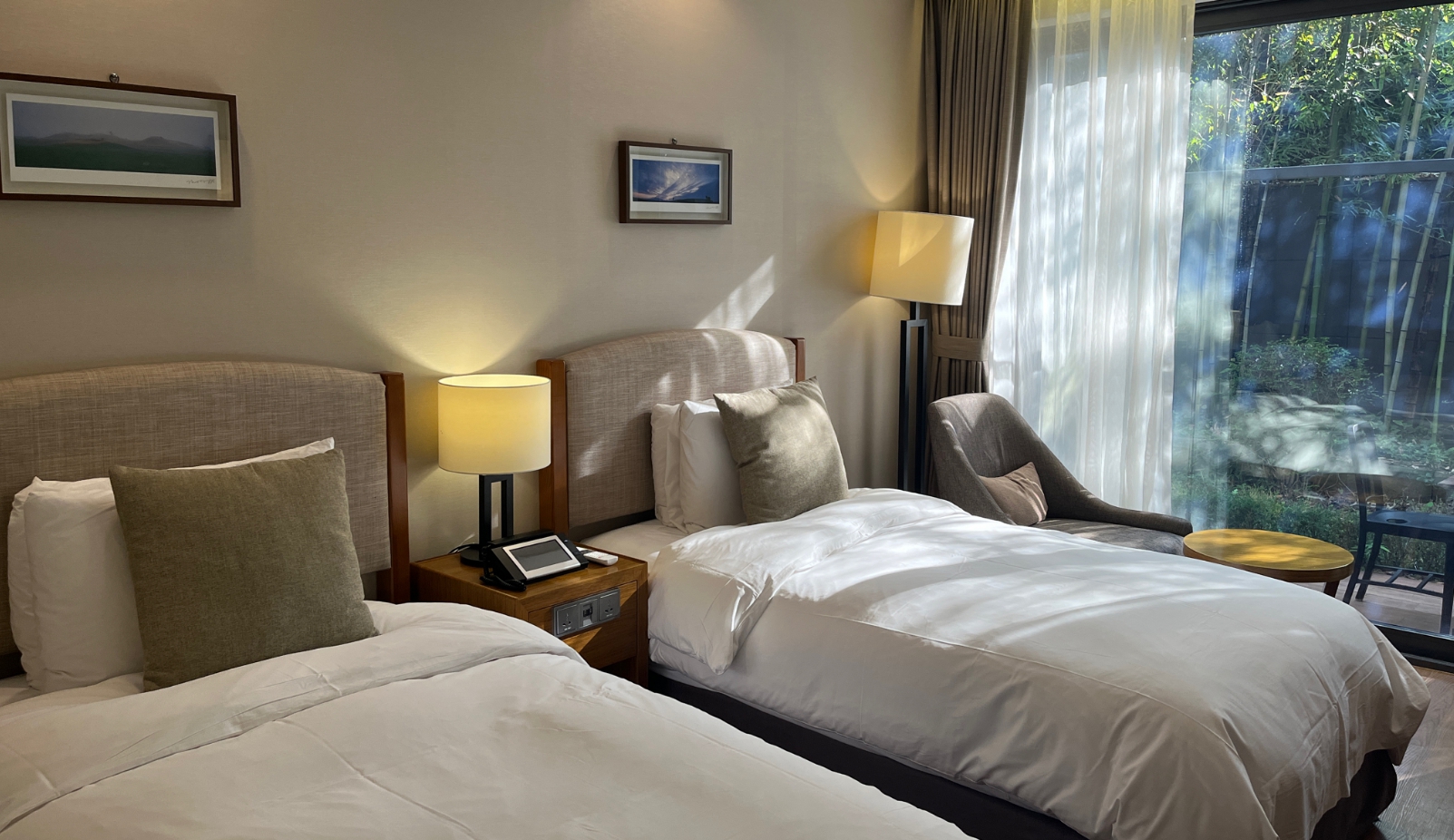 2박했는데 다음에 또 오고싶은 숙소입니다. 룸 청결했고 욕실이 조금 작지만 부족하진 않습니다. 욕조도있구요 창 밖의 풍경이 귤밭 대나무라서 뭔가 편안했습니다 호텔 정원도 대나무라서 운치있고 루프탑에서는 새해 일출도 봤습니다. 붐비지 않게 보니 좋습니다. 호텔 길목에 편의점있고 길 건너는 공원이 있어 산책하기 좋습니다. 새연교 황우지선녀탕이 차로 5분 10분거리라 편했습니다.