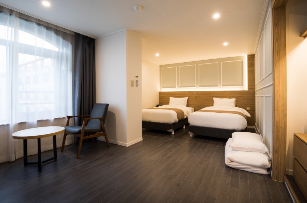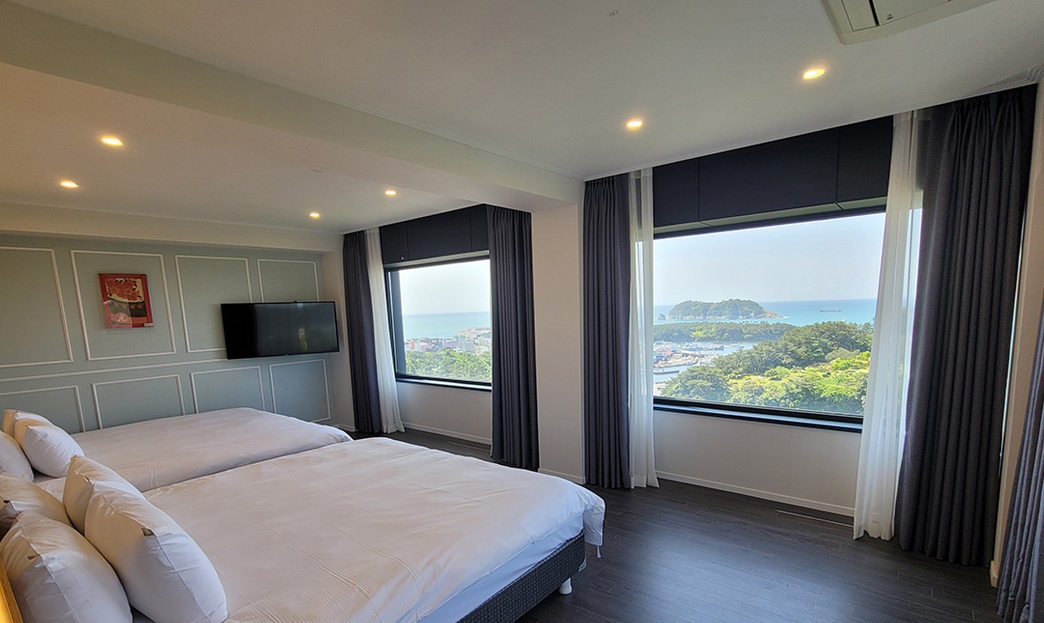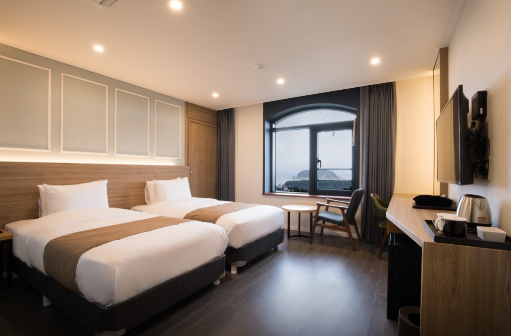 겨울가족여행으로 서귀포쪽에 일정을 잡고 여러 호텔을 알아보던중에 가성비가 좋은 호텔이라는 얘기에 다른 리뷰와 블로그들을 참고하며 알아보고 예약했습니다. 쿼드룸에서는 침대와 온돌을 겸해서 사용할 수 있다는게 아이들이 있는 집에서는 장점인 것 같구요~