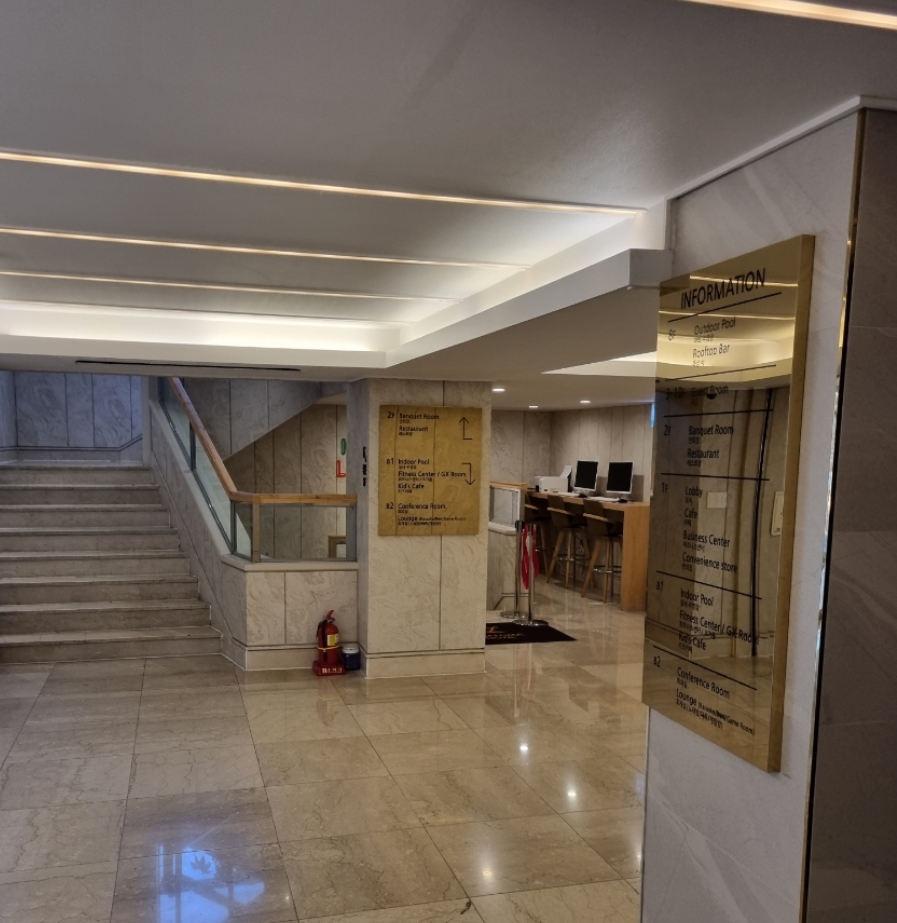 사진에서 보던 것과 달라서 외관에서부터 살짝 충격을 받은 상태로 들어갔었는데요. 내부 프론트 직원분 응대는 친절하신 편이었고 종이를 함께 주시며 하나씩 안내해주셔서 이해가 편했습니다. 내부 객실 인테리어는 한 번 리모델링이 된 듯해 보였습니다. (그래서 외관에서 받은 충격대비 내부는 조금 더 쾌적하게 느껴졌습니다.)