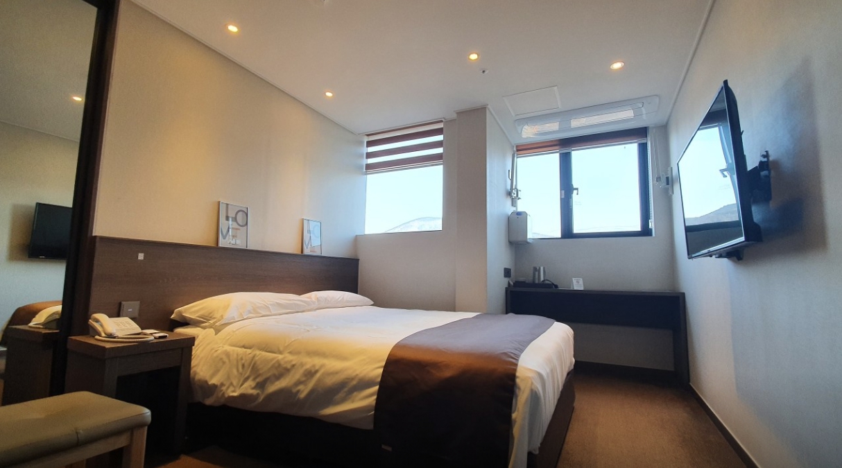 객실 내부는 딱 필요한 것들만 있어요.내부는 좁지만 호캉스가 아닌 어차피 저녁에 잠만 자려고 예약한 곳이기때문에 딱 맞춤형 숙박이였네요. 담에 또 제주 올 때 가성비 호텔로 찾을 거 같아요.찜도 꾹~ 해놓고..
