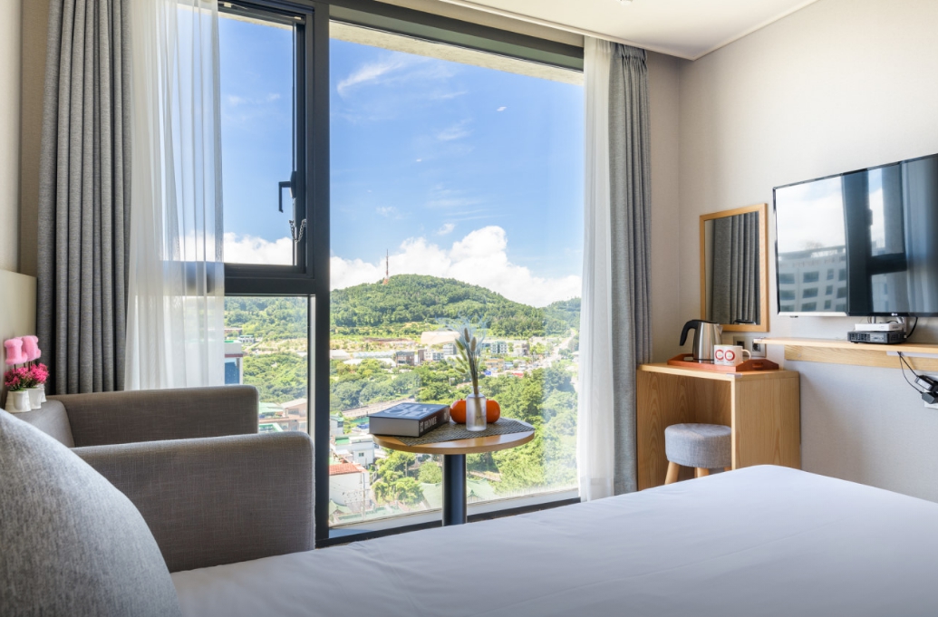 제주 서귀포 푸른 바다와 한라산이 주변에 있어 행복한 여행을 만들어 주는 깨끗하고 아늑한 호텔이며 내 집처럼 편안하고 모던한 객실이 준비되어 있습니다