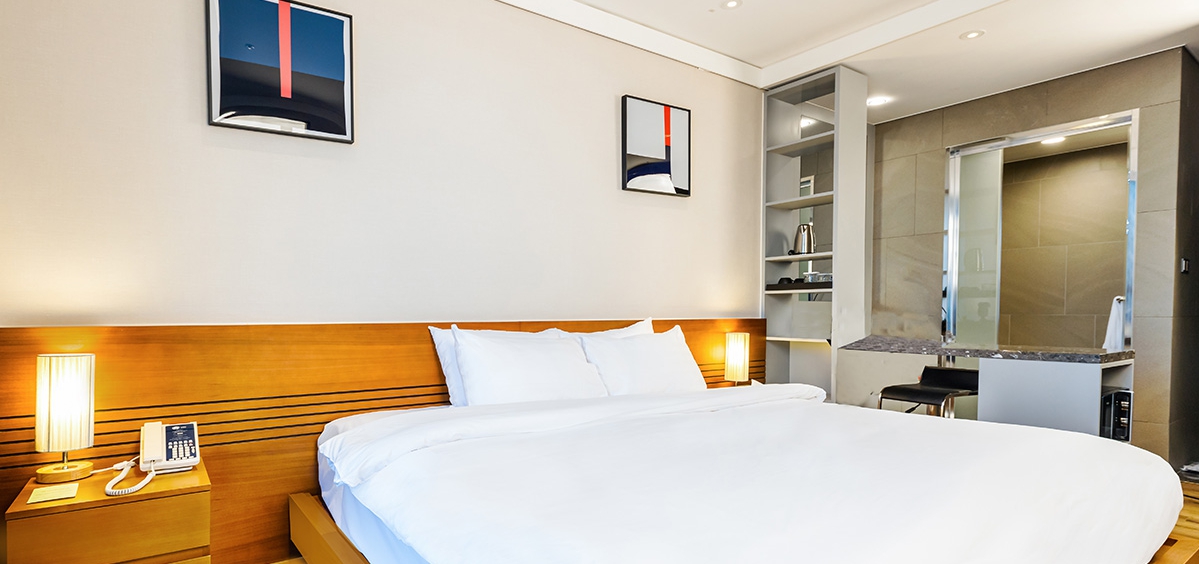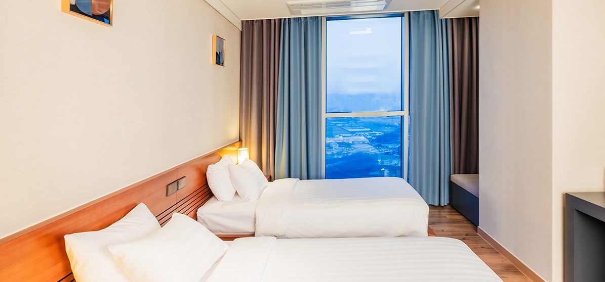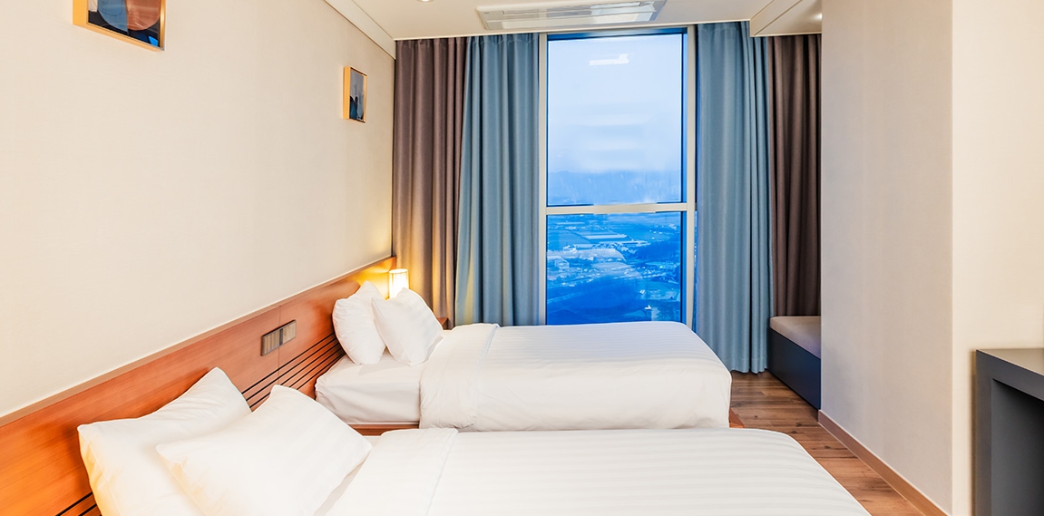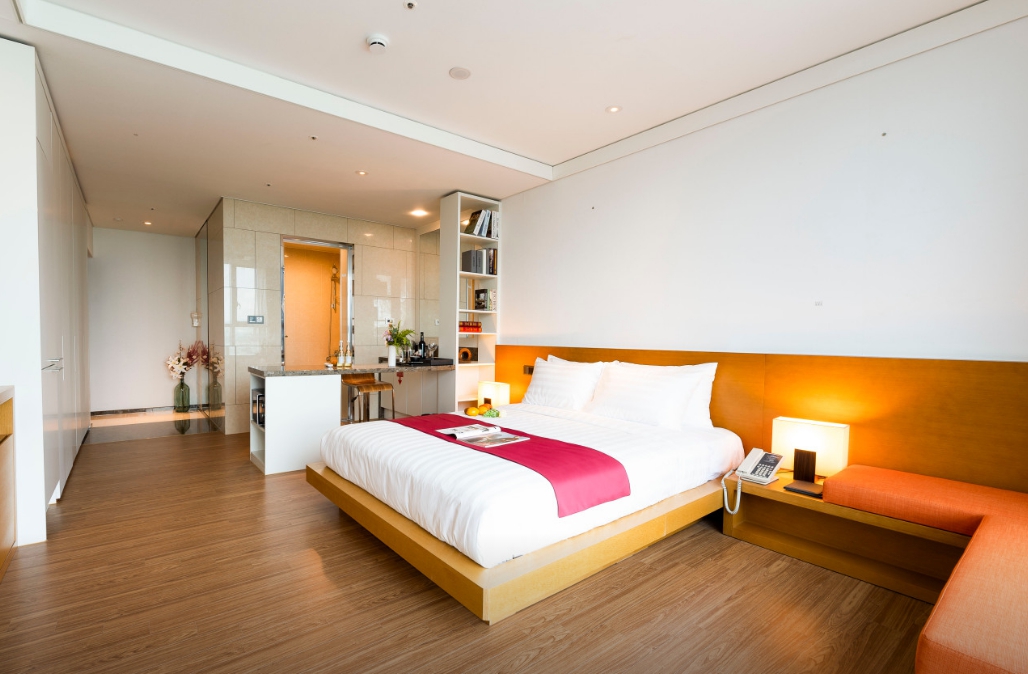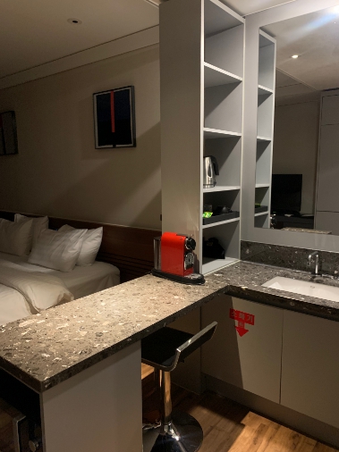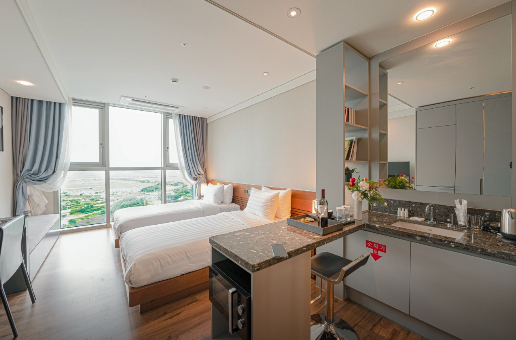 룸 컨디션은 좋았고 2베드(퀸,싱글)로 투숙해서 중학생 아이와 자는데 불편함 없었고 침구도 좋았습니다 세탁기와 씽크대가 미닫이문으로 가려져있어서 인테리어상 보기 좋았고 냉장고도 크고 생수도 구비되어 있었어요 일회용 어메니티도 있어서 잘 사용했습니다.