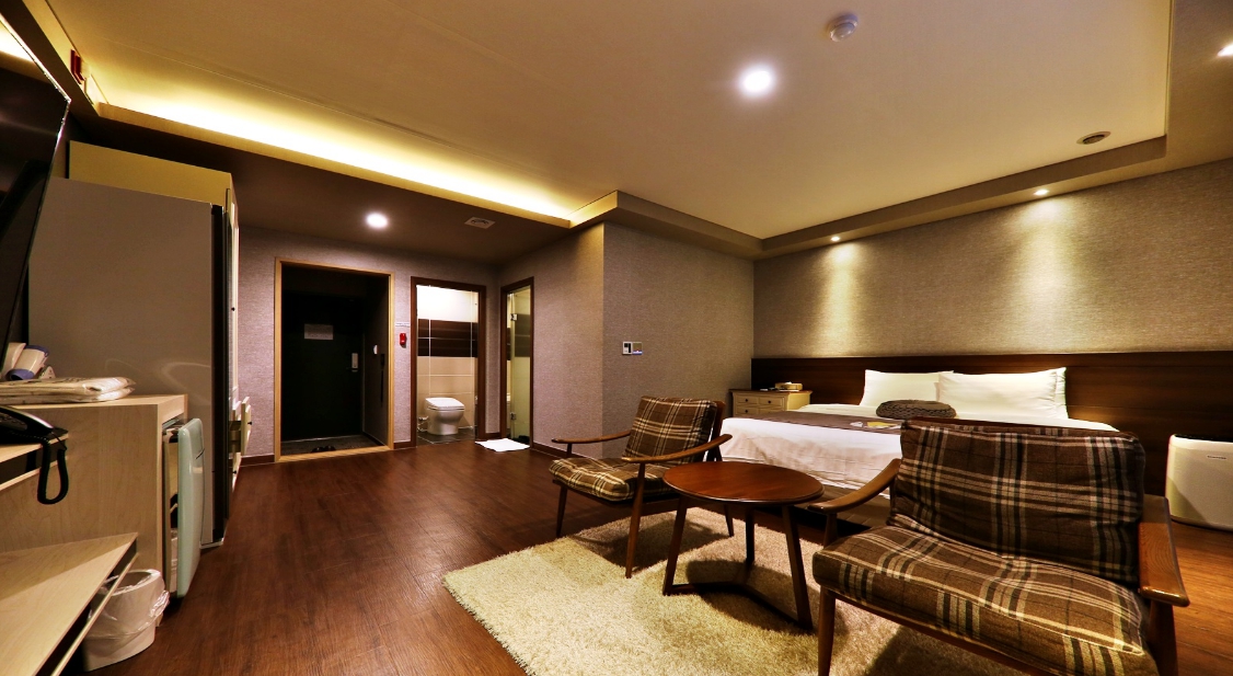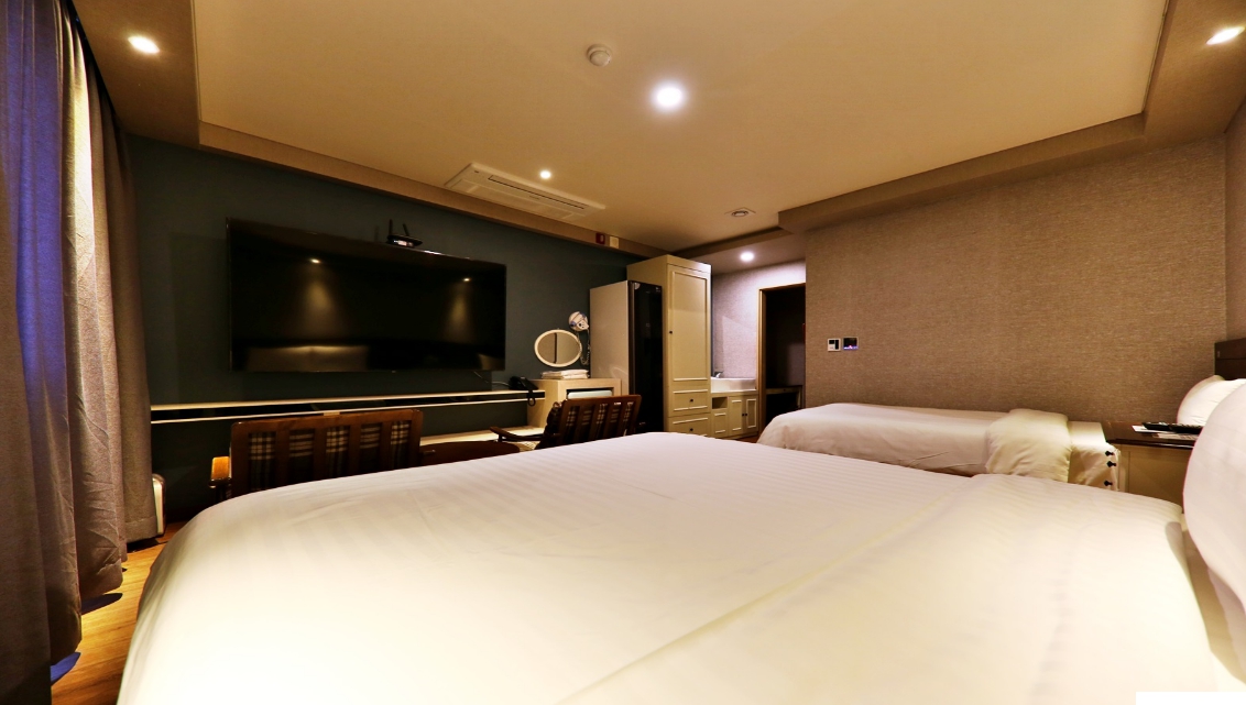 버스터미널 근처 투숙객 숙소로 추천. 생각보다 큰 TV와 스타일러스가 구비됨. 현관이나 객실에 큰 캐리어를 보관할 수 있는 선반이 있으며 객실 온도도 적당한 편이라 푹신한 침대에서 잘 숙박함. 재방문인데 가격대비 만족감이 높음.