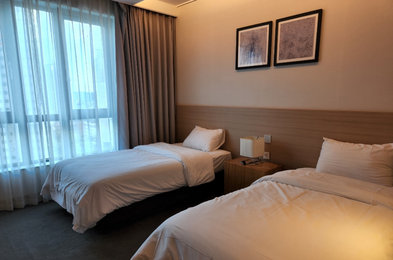 그리고 엘리베이터 근처 방이라 엘리베이터나 복도 쪽 소리가 들리지 않을지 걱정 되었는데 이 역시 거의 소리가 들리지 않아서 편안하게 쉴 수 있었습니다. 주변 방의 소리 역시 거의 들리지 않아서 방음 측면에서는 여러모로 만족스러운 방이었다고 생각됩니다!