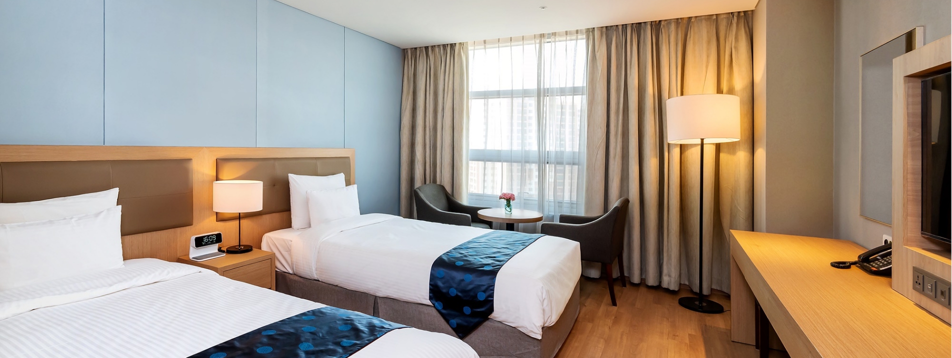 두 번째 방문인데 이번엔 더블룸으로 잡아봤어요~ 룸컨디션도 좋고 침구나 샤워가운, 타올도 낡은 느낌이 없어서 좋았습니다. 베개는 따로 추가 불가해서 아쉬웠어요..누워서 티비보려면 두 개는 필요한데..그리고 기본 어메니티는 구매할 필요 없이 객실에 다 준비되어있어서 편리했어요~! 다만 트윈은 8층이 제일 고층이라 예약 하실 때 참고하시면 좋을 것같아요