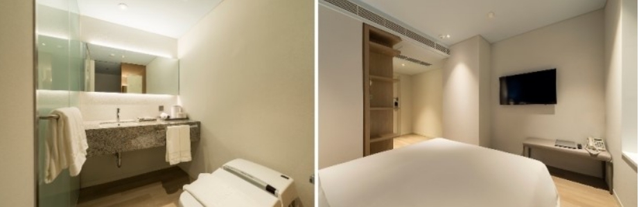 객실 깨끗하구, 인테리어는 군더더기 없어요! 테이블 살짝 옮기는데도 먼지 많이 안보여서 좋았습니다. 욕실도 청결하구요.