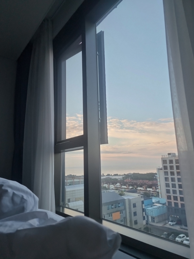 통창이라 아침 해 들어올 때 답답한 감이 있지만 에어컨 틀면 되기때문에 더할나위 없었네요 ! 나름 저멀리 보이는 오션뷰라 특히 기분 좋았습니다. 안에 세탁기도 있어 장기 투숙자에게 유용할 듯 했습니다. 다만 방자체가 좁았으나 가격에 비하면 너무 좋았습니다. 늦게 체크인해서 직원분이 기다려주셨는데 친절하시고 감사했습니다. 쭉 유지 되었으면 하는 바램입니다 ! *주차장은 바로 옆에 있어 하기 편했습니다.