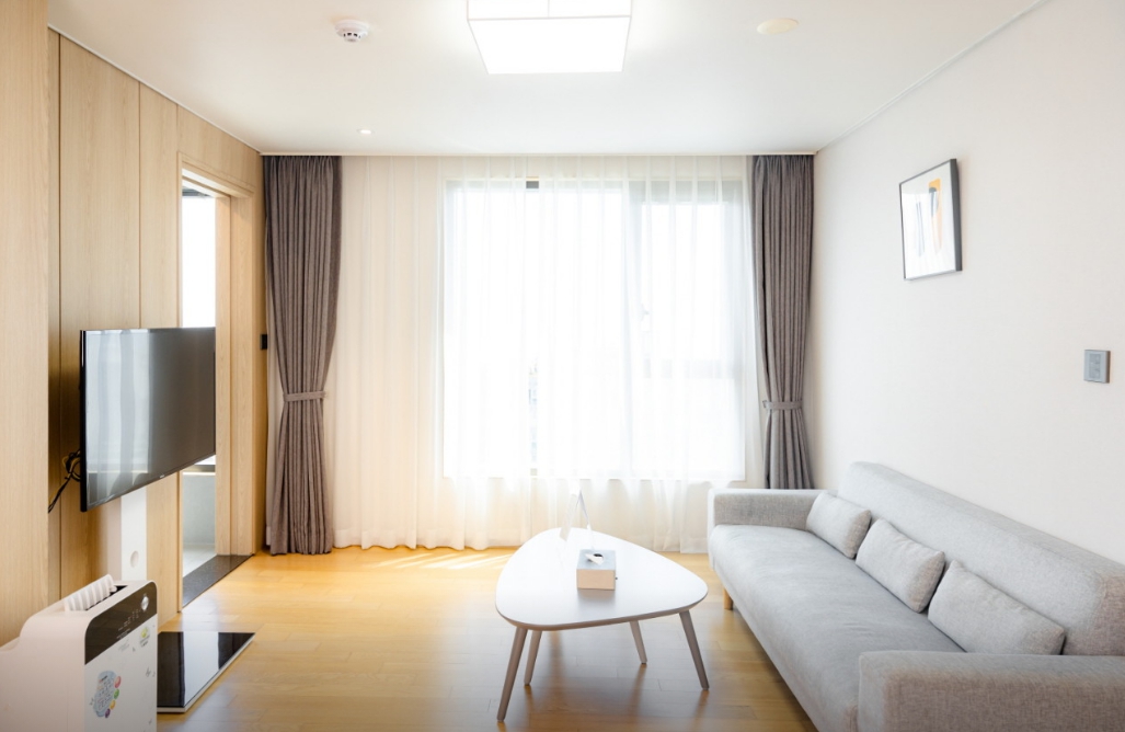 바닥 청소 해주셨는데 머리카락이 그냥 있는거 빼고 좋았습니다! 도심 한가운데 있어서 지리적으로도 아주 좋고, 옆방 소리가 안들린거 보니까 방음도 괜찮아보였어요! 친구와 머물렀는데 다음엔 가족들과 머물러도 좋을것같습니다! 주차도 꽤 넓어서 편했어요