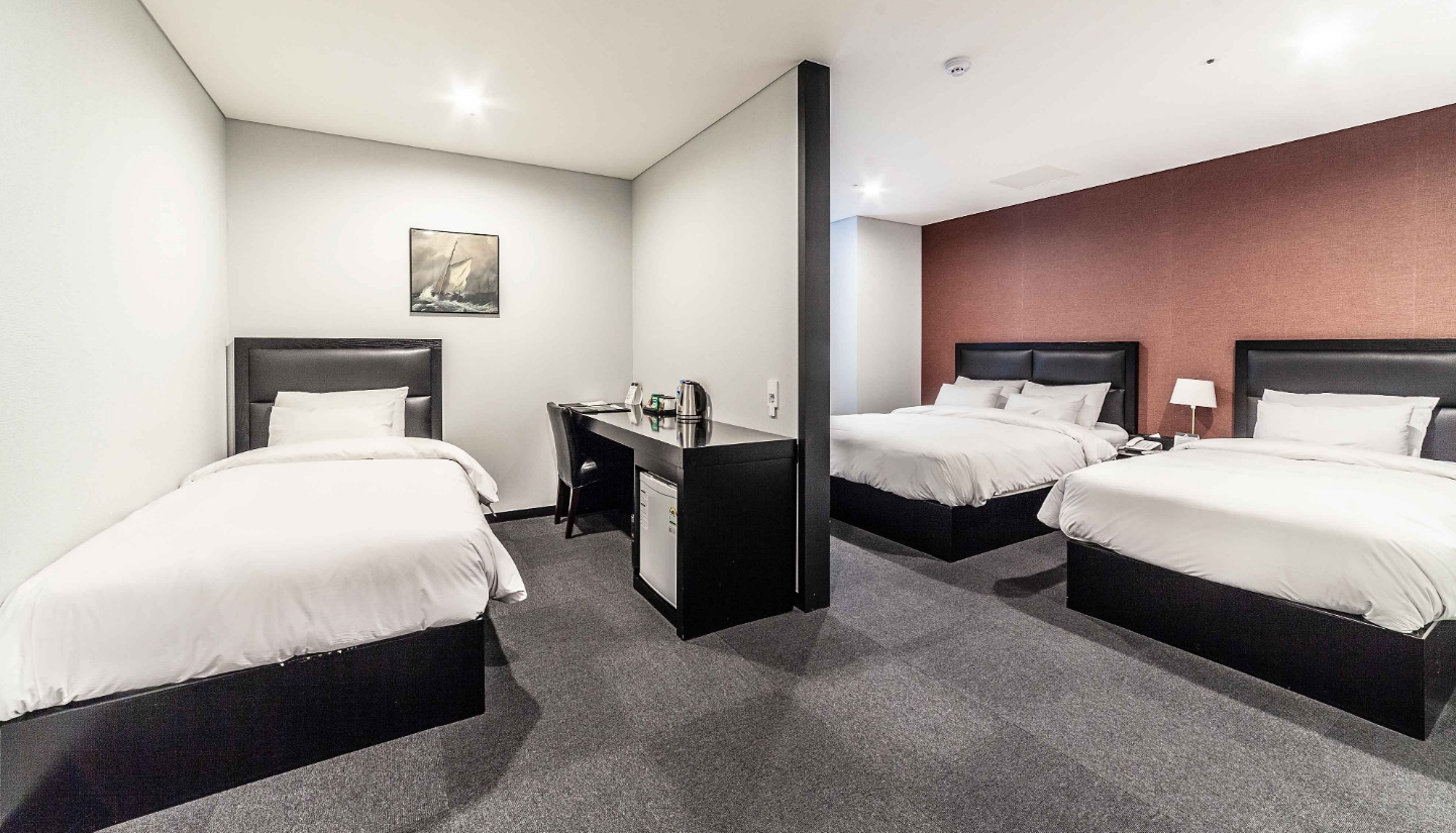 트리플룸으로 예약했는데 방이 널찍해서 좋았어요. 테이블도 따로 있어서 편리했고, 다만 아쉬웠던 점은 고층이라 그런지 수압이 오락가락한 것과 티비가 작은 편이었던 것은 조금 아쉬웠습니다. 엘리베이터도 타려면 1 층에서부터 엘리베이터용 전용키를 찍어야해서 보안도 꽤 괜찮다고 생각해요. 매트리스나 수건의 청결도 괜찮았어요. 어메니티도 다 준비되어있어서 편하게 가면 되는 것도 만족스러웠습니다.