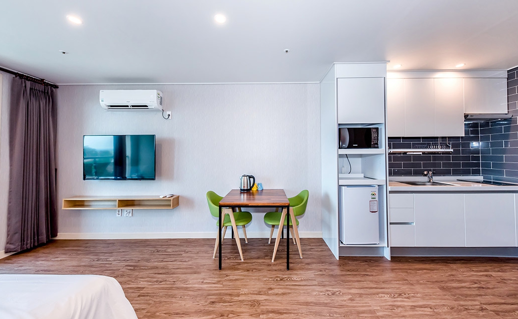 넓고 쾌적해요. 테라스(?)뷰 도 괜찮았어요. 화장실, 씽크대, 욕실 수압 정말 최고입니다. 다만 방음이 되지 않아 새벽 4시 이후까지 잠을 잘 수 없었어요. 물론 여행지인건 이해 하지만 새벽까지 어처구니 없게도.. 침구도 포근하고 정갈한데 도통 잠을 잘 수 없으니 기분이 상하고 엄청나게 피곤하네요.