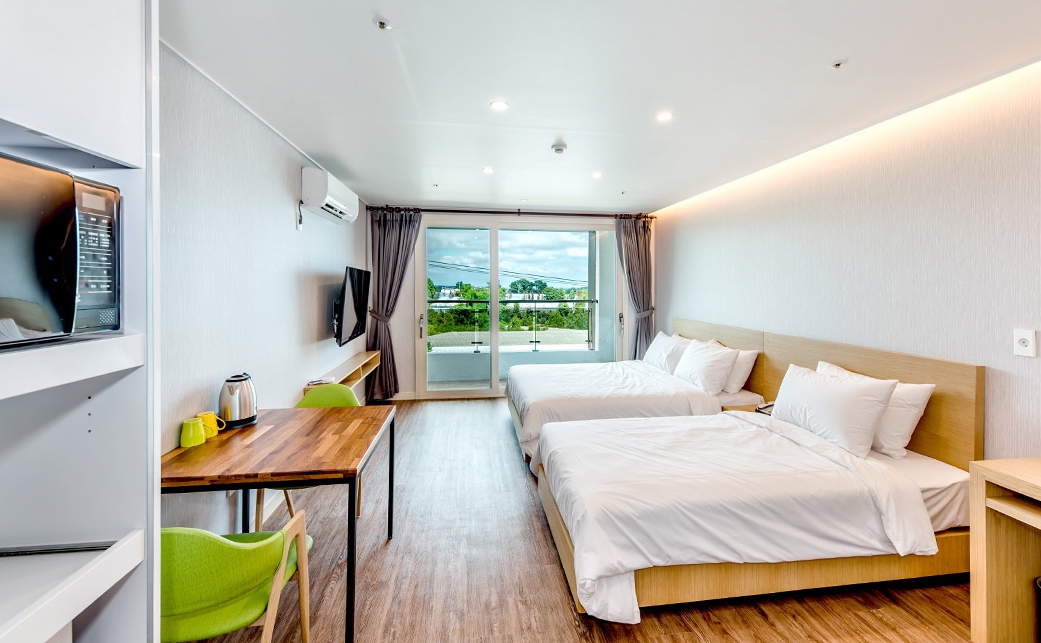 휴가로 제주도로 놀러왔는데 군인이라 저렴한곳을 찾아서 예약을 했습니다. 솔직히 시설이런건 기대도 안하고 왔다가 아~주 만족하고 갑니다. 방도 완전 5성급 6성급 까지는 아니지만 정말 깔끔하고 심플한 방에 모두 편안하게 쉬다 갈 수 있는 공간이고 가격이 저렴하다는 점!