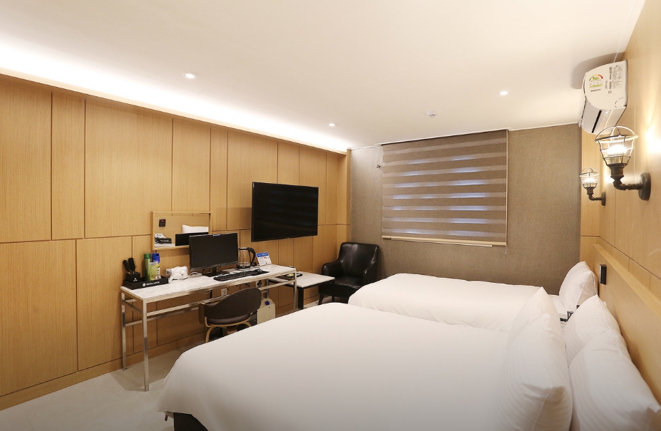 당일에 급하게 잡은 숙소라서 솔직히 별로 기대 안 했는데 너무 깔끔해서 좋았어요 체크인 해 주시는 젊은 남자 직원분? 사장님? 너무 친절하셔서 더 기분 좋게 여행할 수 있었던 것 같아요 방은 두 명이서 지내기에 나쁘지 않구요 샤워기 수압이 짱이에요 엄청 잘 나오는데 막 따갑거나 그런 샤워기 수압이 아니라 부드럽게 콸콸 잘 나오는 샤워기랄까요