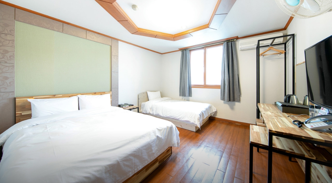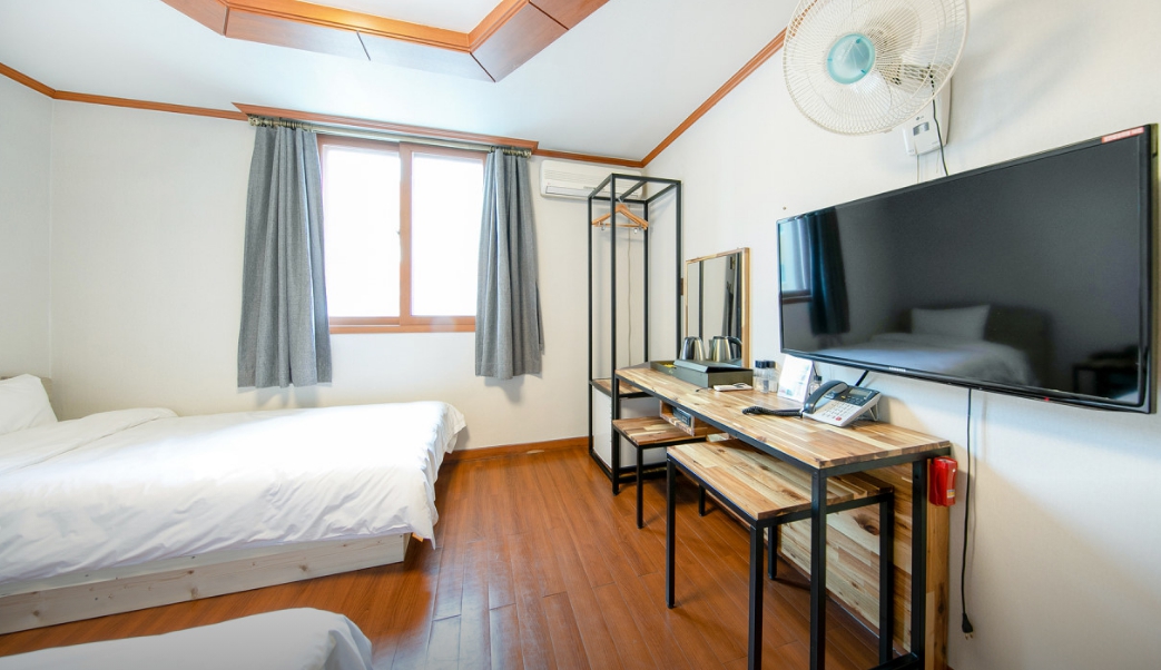중앙시장 도보 10분 거리 조용한 곳이라 묵기 좋고 사장님이 친절하세요. 스타일러와 공기청정기까지 있고, 아침엔 간단하지만 조식이 있어 먹고 출발하기 좋네요