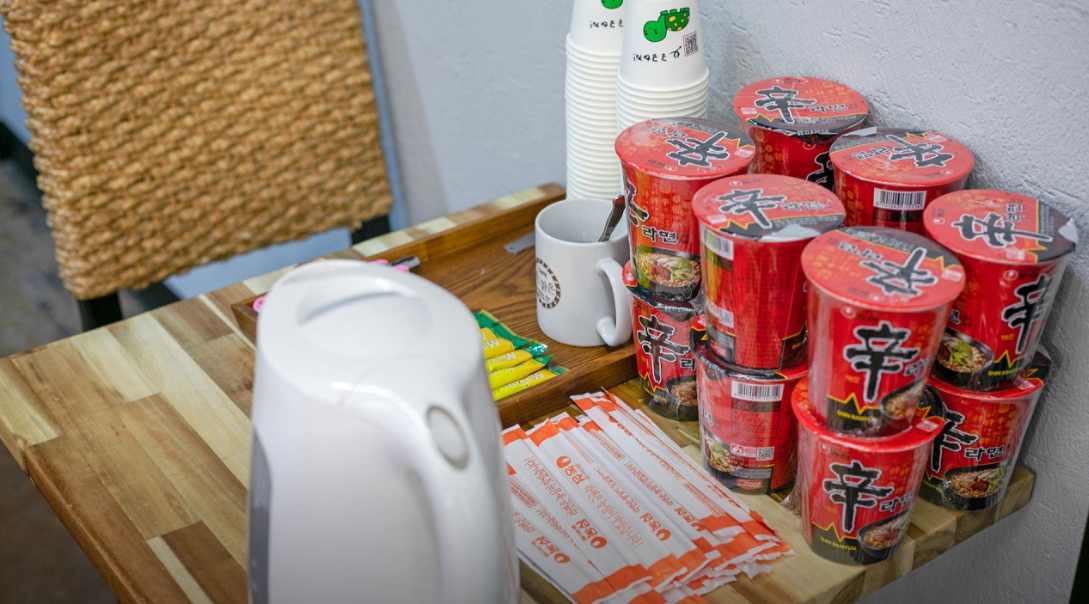 되려 강릉역이랑 상당히 가깝고 좀 걸으면 중앙시장이 있어서 시장에서 닭강정이랑 회 포장해서 먹을 수 있었습니다. 오션뷰와 같이 전망의 큰 필요성을 느끼지 못하신다면 숙소의 위치도 좋을 것 같습니다. 바다랑 조금 먼 대신 강릉역과 시내, 시장과 가까워서 차 없이 ktx 타고 온 여행인데 큰 불편함이 없었습니다. 주변에 독립서점이나 괜찮은 맛집들도 많아 보였습니다. 또 사장님이 여행팜플렛? 도움이 될만한 정보가 쓰인 종이를 주시는데 이것도 참고하면 좋을 것 같네요