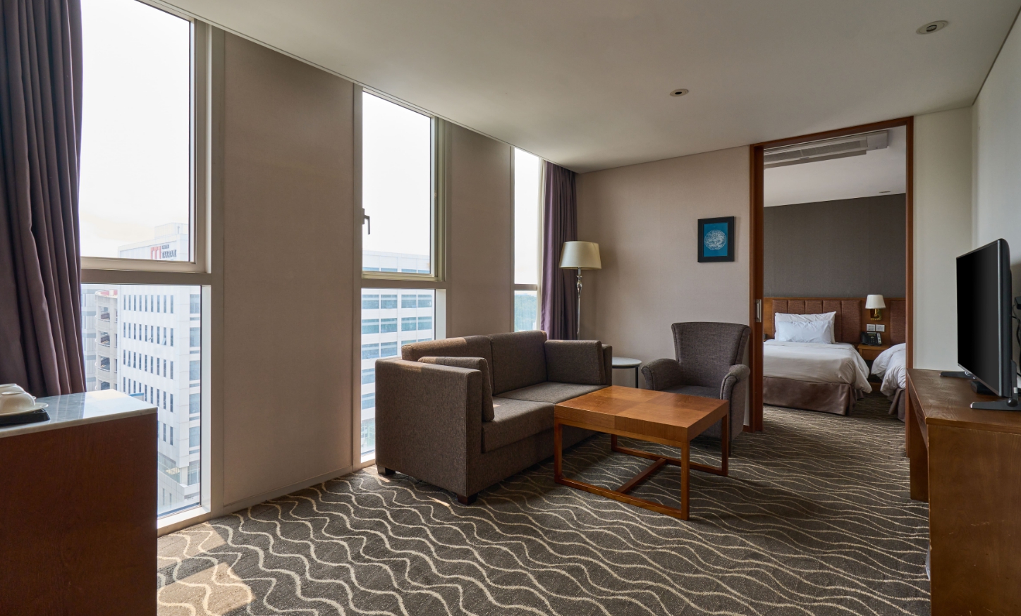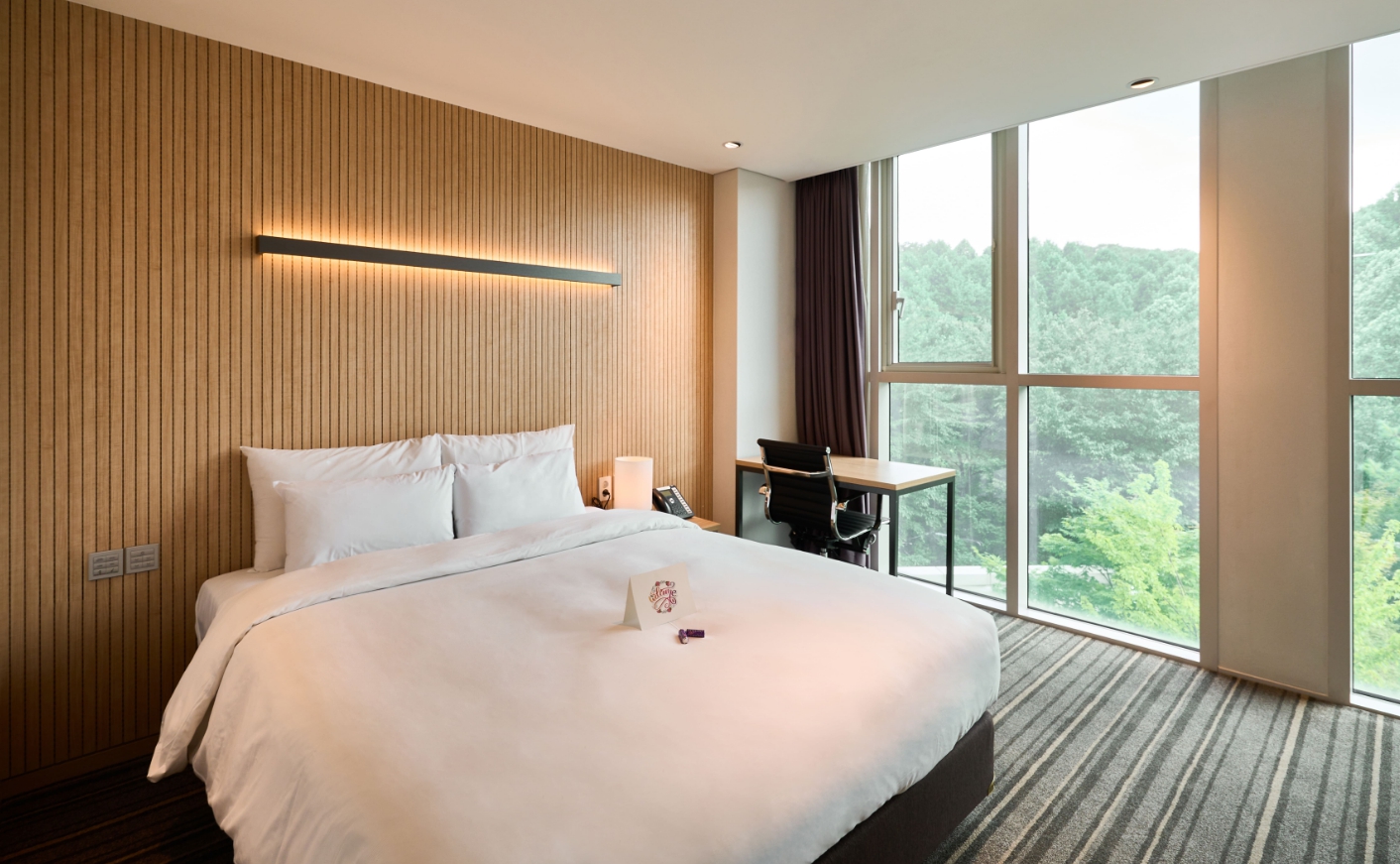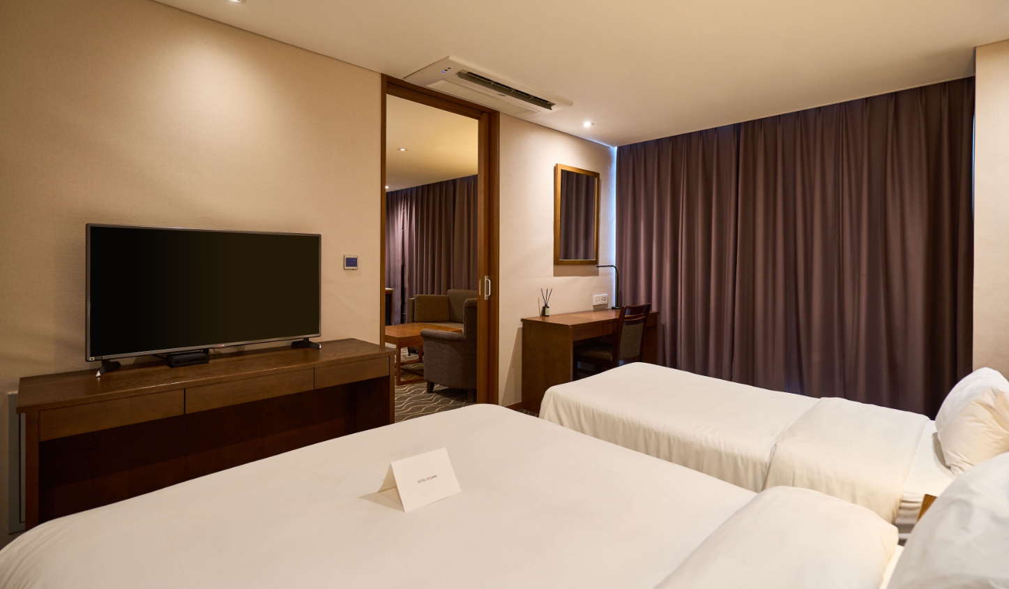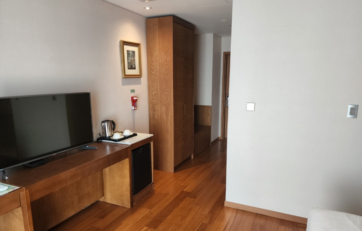산 전망 보려구 현장에서 추가 결제. 배실받은 스탠다드룸 전망은 산 2/3 ,도로 1/3 낮에는 산보고, 밤에는 한가한 도로 불빛이 예쁨. 조용하고 향긋한 분위기. 어메니티는 거품이 잘 안나는 샴푸. 근처에 편의점 좋음. 식당은 일요일에는 다 문 닫음. 배달 음식 다양해서 좋음 엘레베이터 많아서 좋음. 침구류 깨끗 포근. 높낮이 나름 베개 두 개이고 잠 푹잔 몇 안되는 호텔