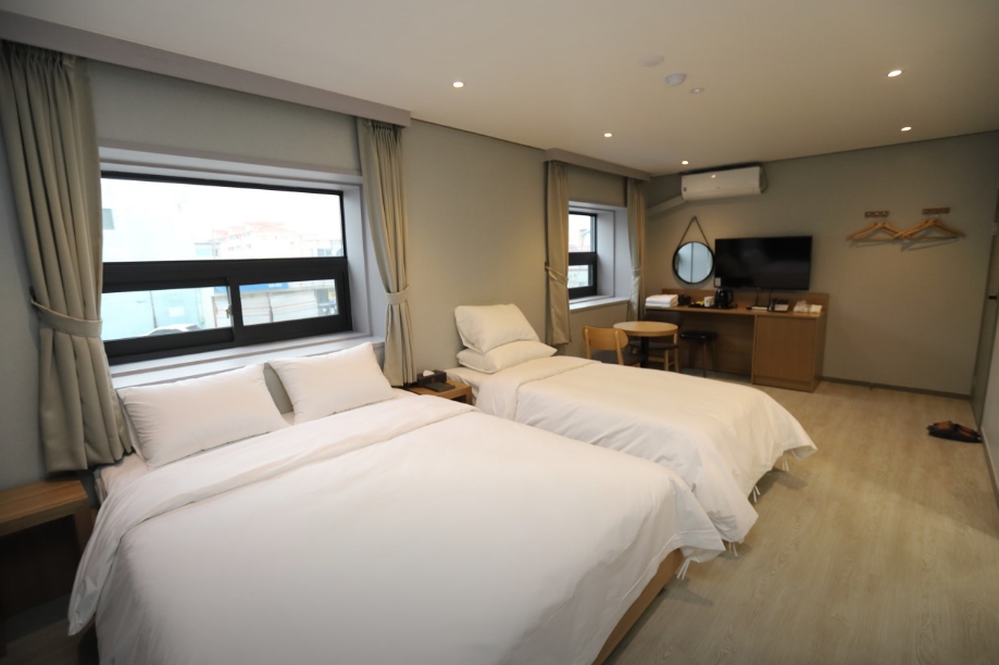 가족들과 여행이기에 여러 숙소들 중 가성비가 좋아 예약하게 되었습니다. 처음 예약 시 혹시 모텔스러운 느낌이 많이 날까 걱정을 많이 했는데 가족호텔, 관광호텔 느낌이어서 편안하게 머물 수 있었습니다. 호텔 관리도 잘 되어 있어서 몹시 깔끔하고 쾌적했으며 조식 부분도 라면 토스트같이 간단하게 있고 이 또한 무료로 제공되는 등 이런 부분들이 좋았어요.