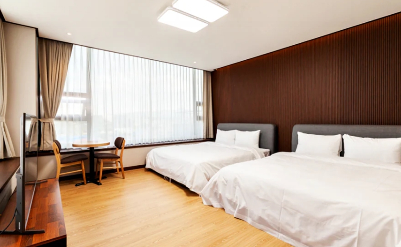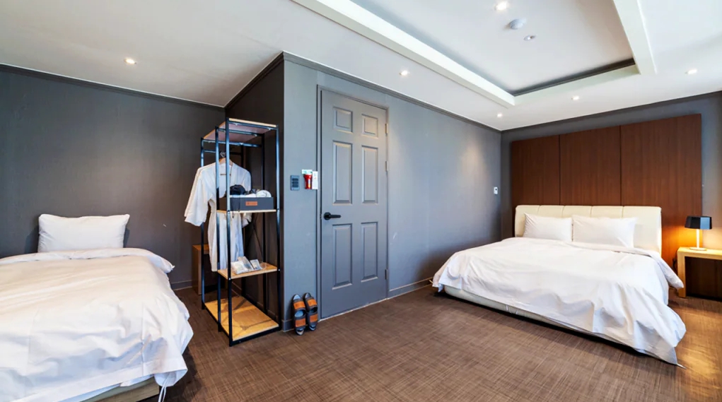 첫 번째도 두 번째도 무조건 깨끗한 숙소를 찾게 되는데 호텔방 문을 여는 순간 감탄했어요 너무 깨끗하고 객실도 넓고 진짜 마음에 쏙 들었어요 그날 많이 추웠는데 방도 따뜻하고 매트리스가 딱딱하다고 하는 분들도 계셨는데 저희 식구는 세상 편하게 꿀잠 잤어요