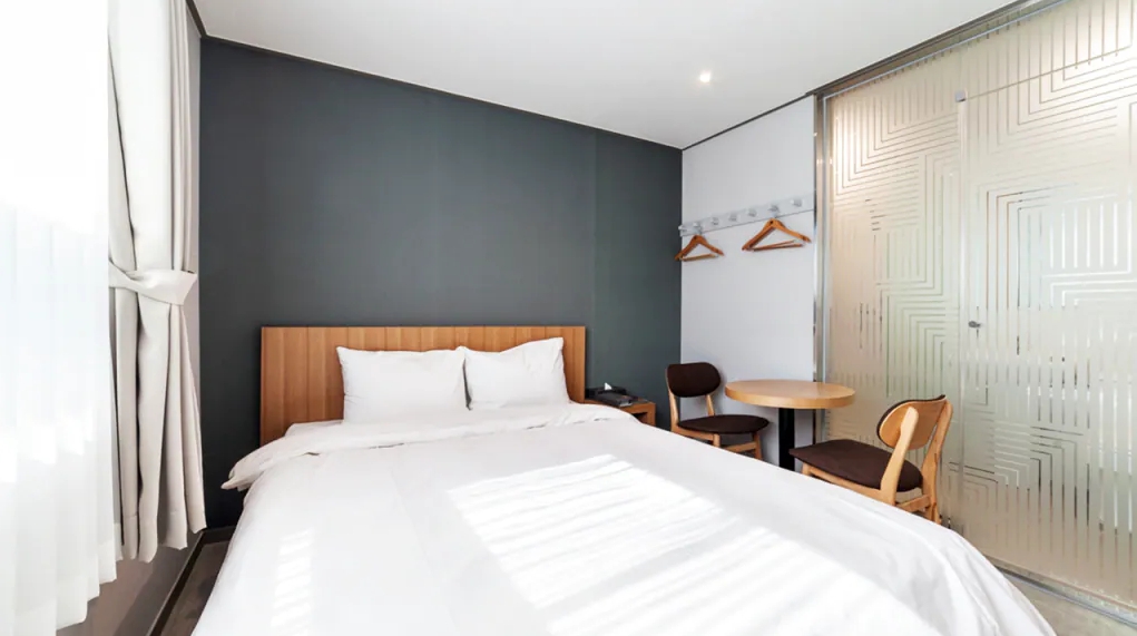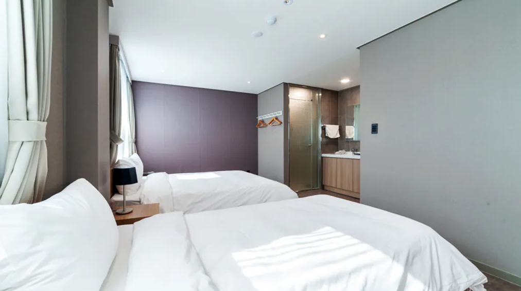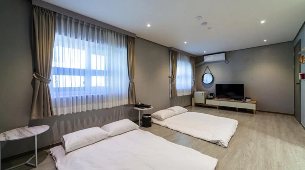 강릉역에서 멀지 않아서 지도 보며 걸어서 갔는데 찾기 쉬웠으며 룸이 깔끔하고 샤워실과 화장실이 독립되어 있어서 매우 편리했고 시티뷰가 탁 트여있어서 너무 좋았다 난방을 아끼지 않고 뜨겁게 해주시고 다음날 다양하진 않아도 조식 서비스로 약간에 빵과 라면이 비치되어 있어서 아주 편히 쉬다 나왔다 딸들과의 여행이라 매우 신중히 찾아본 결과 가족이 묵기에 만족스런 곳이다